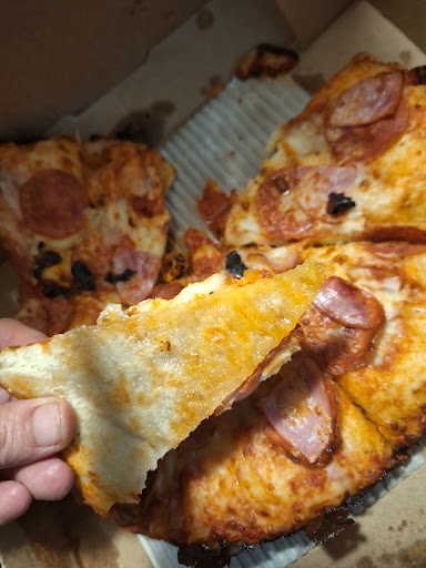 I love Dominos. But really hate people that don't believe in making a good product. Or making sure standards are met. Those who know me understand quality and customer service and me. Good looking food tastes better than bad looking food. It is disigned to be made a certain way. when it is not it looks and tastes worse than it is supposed too. When I ran the Dominos in Jtown quality was first and foremost. But, when it was busy quality did fall slightly. This was to insure fast and hot product o everyone at all times. I kept track of all deliveries and dispatched when it was needed. Drivers can't be left to there own in most cases. It is about money to then not quality. I drove too. I know. cherry picking is real. Now add in the fact people want to do the least work possible for the pay. I took almost an hour to get me food. The cheesy bread was hot. That means the cheesy bread was new compared to the pizzas on the order. Be it mistake that delayed it or not. The pizzas should be as hot as the rest after being sitting for so long. This is a issue with all places like this. The only thing you get now when you call is it is on the way . Automated response. By your phone number. Crazy that no one sees to care about...