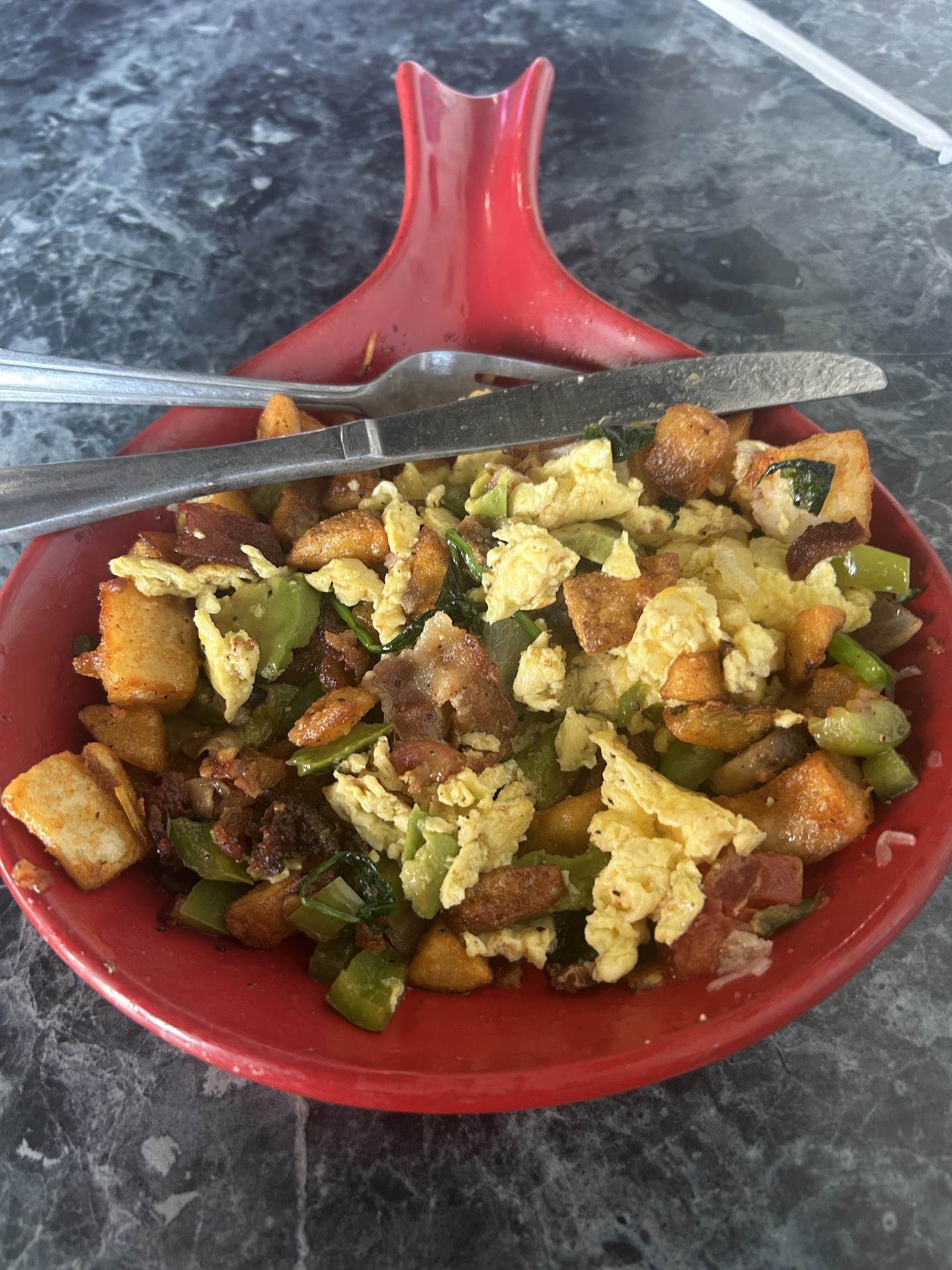 Just about 15 minutes later our food arrived. My wife's hash browns weren't hot. They weren't even warm. Apparently the eggs and the bacon were good, but that plate went back. Hot food Hot is the name of the game, not Hot food Room Temperature. About five minutes later her plate came back out, this time with hot hash browns. My omelet wasn't as hot as it should have been, but you could tell that the heat lamp that I'm guessing it sat under at least warmed it above room temperature. I didn't want to send it back. We were too far into it at this time.