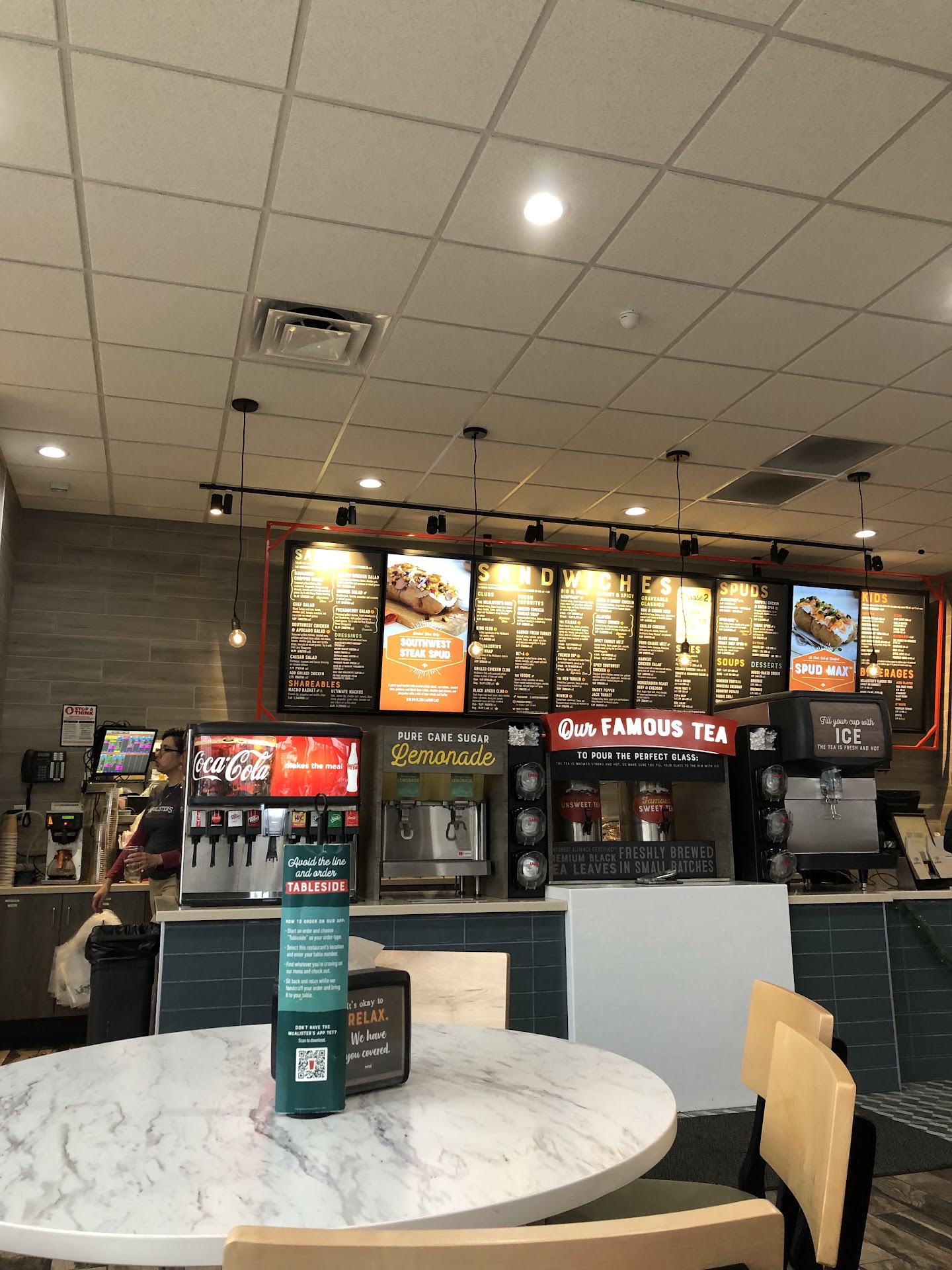 This new location is very clean and it was nice to be able to dispense my own drink or get a refill whenever I wanted to. There was virtually no line and I think that was due to having multiple cashiers, which rocked. My cashier did log my food correctly on my order, but I asked for a cup for water and was charged $2.99 for a sweet tea. I didnât notice until she handed me the big cup used for fountain drinks after I paid and at that point I didnât want to hold up the line so I just accepted that I would have a fountain drink haha. The food came out really quickly for the lunch rush, which was good, but if you ask for any modifications to your meal, donât expect them to do it even if itâs on your receipt. I asked for no tomato and to substitute the spicy mustard for regular and they just basically made the sandwich totally to standard with no obvious change other than the spicy mustard being on the side instead (which was good since I didnât want the spicy mustard anyway). Although⌠Iâm not sure if the mustard comes on the sandwich or the side anyway since Iâve never had that one! My coworkers had similar order inaccuracies and we all realized it was just because we modified something on the standard build of whatever was inaccurate. I think if we all ordered to standard, everyone wouldâve gotten what they wanted? Otherwise, the Italian sandwich was very tasty and had a good portion of ingredients on it. The potato soup is not very good, or at least it wasnât the day I went. It was runny and sorta bland when you didnât get bites of bacon in a spoonful. Overall, I would go back since it was a quick and good lunch, but I wouldnât take anyone here that needs their order to be modified because Iâm not quite sure it would happen. Hopefully they improve on this...