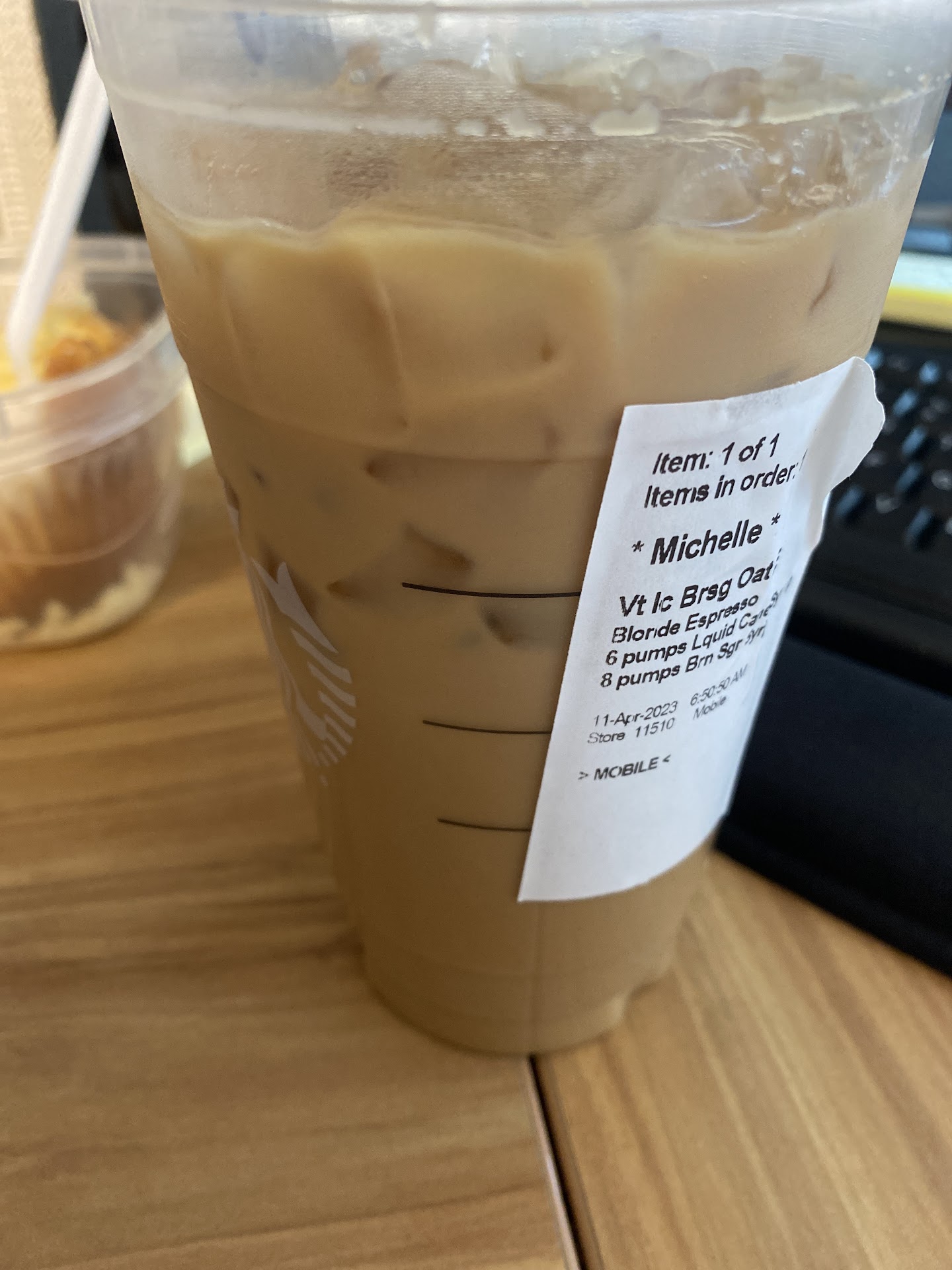 The third one, today's order, I would say it definitely looked better. Nothing will be the first one, but this one looked like they attempted to actually make a decent drink, it wasnt all weird like yesterdays. That was horrible until i shook it all up