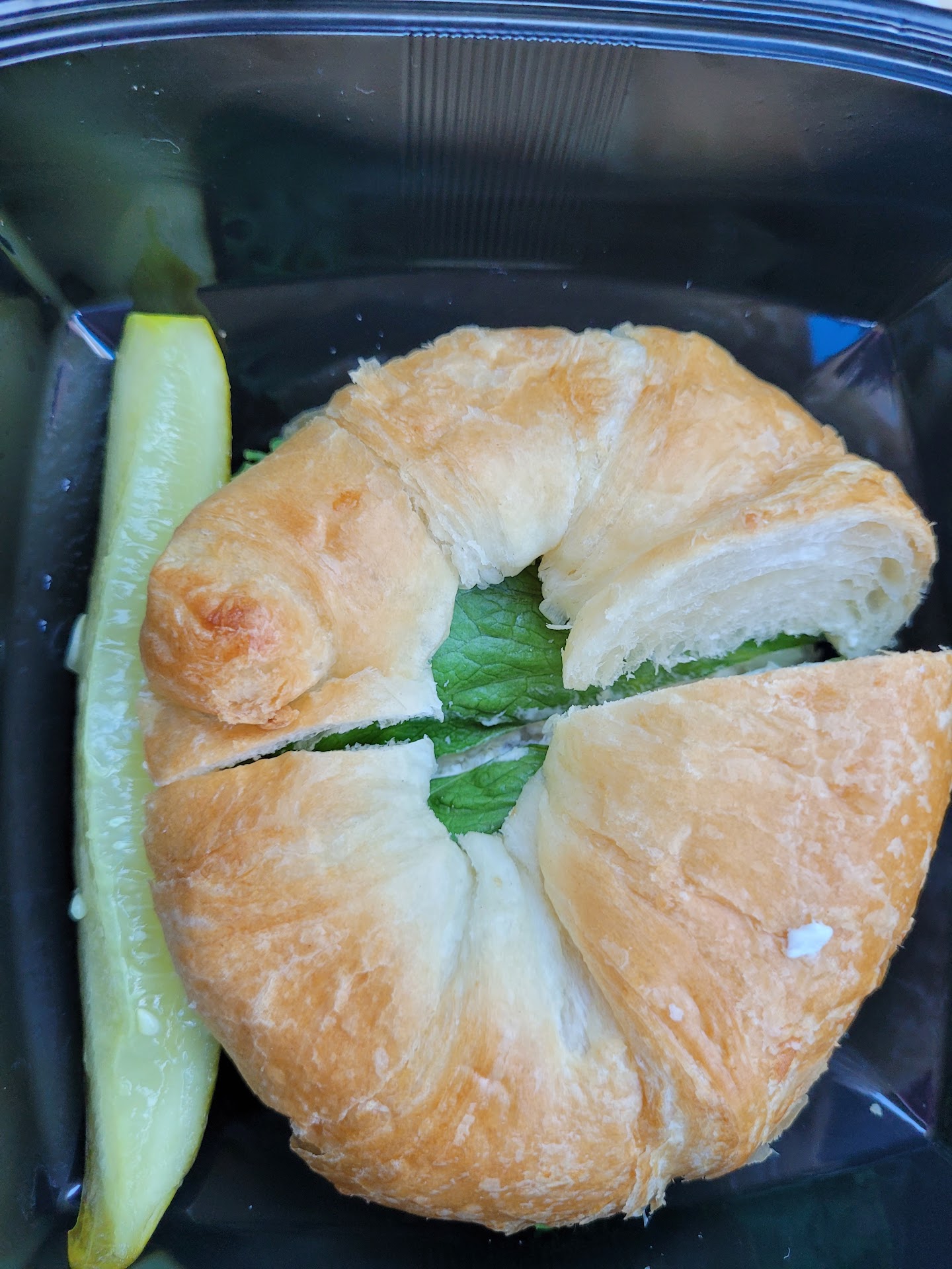 The croissant was fresh and soft, the lettuce was limp, the salad was ok. Nothing to write home to my Southern Mama about. The dill pickle slice added some flavor and I'm not a pickle lover.