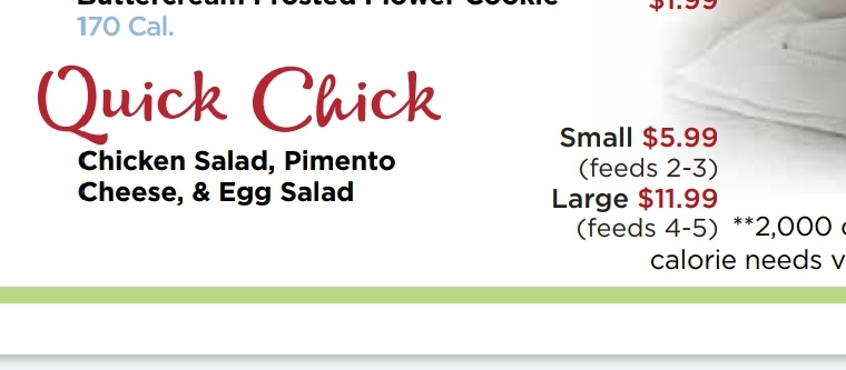 update: i purchased the bbq flavor chicken salad sandwich (i don’t remember the name) with white toasted bread dressed with tomato and lettuce. in my mind i thought i was eating like a pulled bbq chicken sandwich. i tried the potato soup, which wasn’t really soupy. not my favorite so i will go back to the terrific grape salad next time. we will go back. good quality food. nice clean attractive atmosphere. we bought an bag of the cookies. omg. a great gift idea.