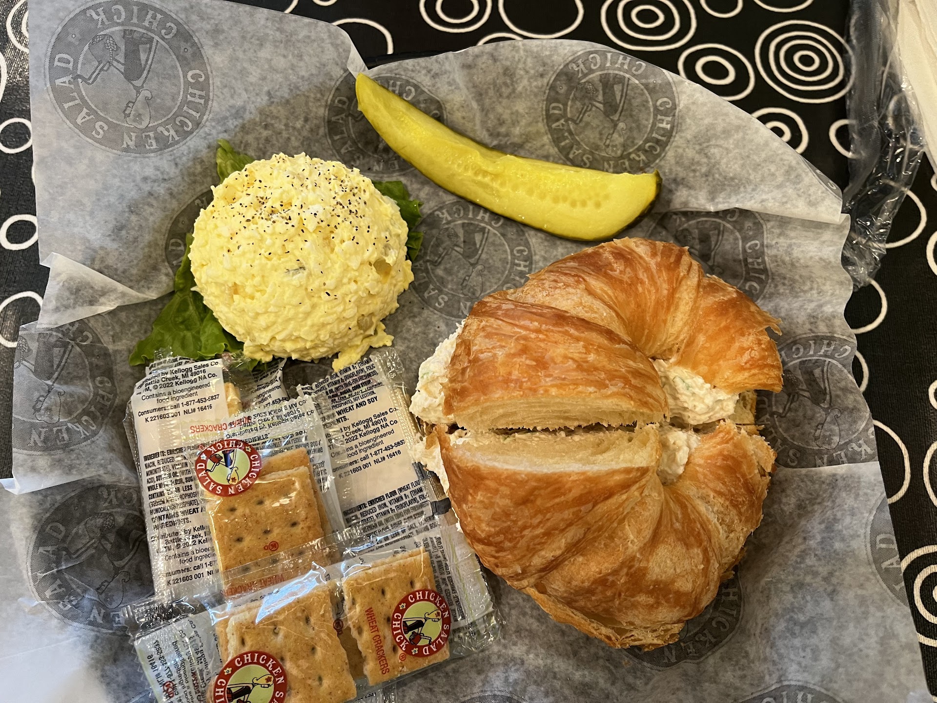 I chose the Trio.. getting Olivia's Southern Chicken Salad on a croissant, the broccoli salad, and loaded potato soup and a cookie.