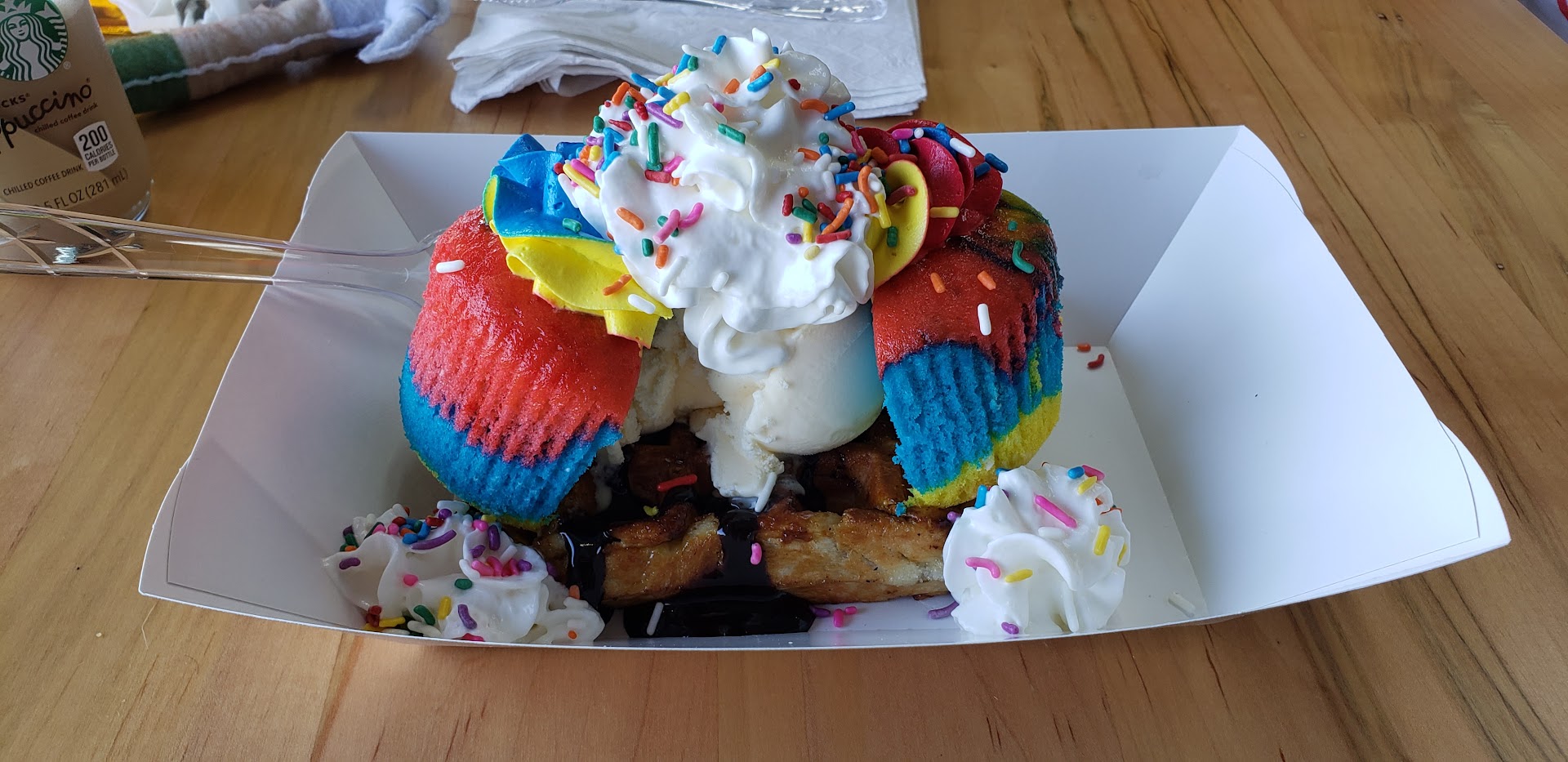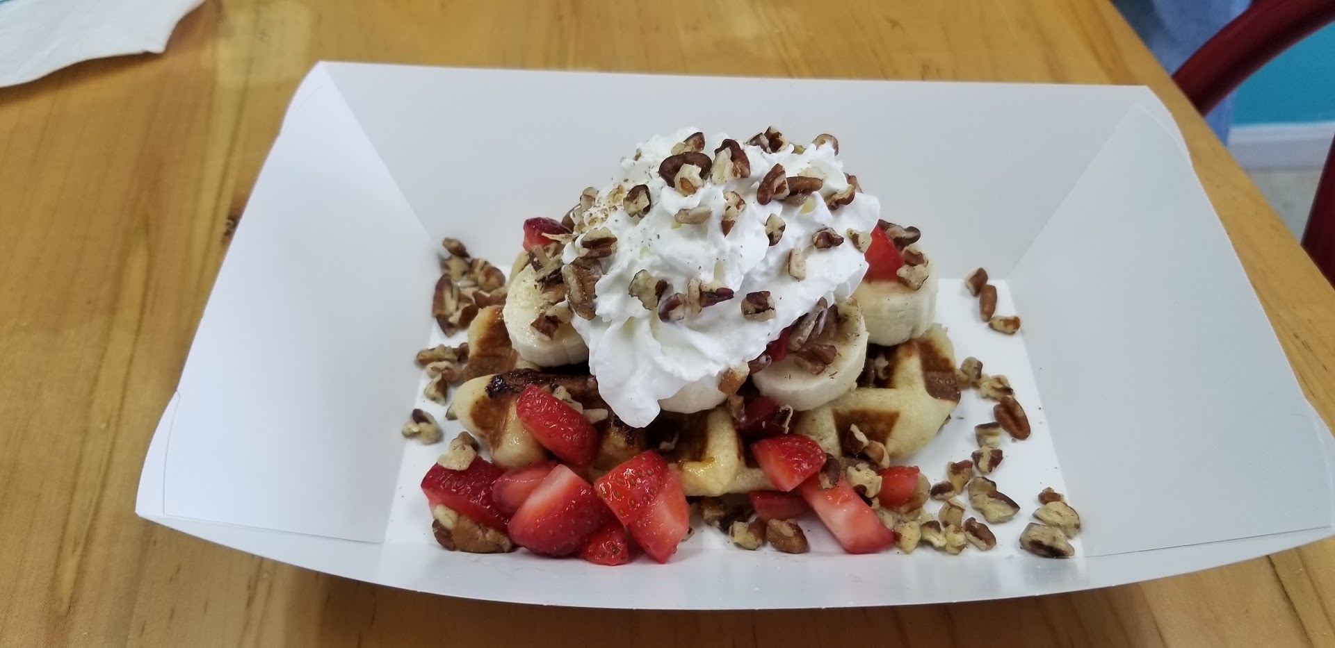 Read moreI wish this place all the success in the world. Saw it posted on Facebook and had to try it out. At first, when I received my Waffle, I thought it was rather small, however I was full when I was done and it was absolutely delicious. I have been wanting a pecan waffle and was very happy with the taste and actually the size. All they serve are waffles but in the most unique way you can imagine. For example, there is the funky waffle for $12.49 oh, but it is a waffle topped with a tie-dyed cupcake, ice cream, whipped cream and sprinkles. Wednesdays are half price on the waffle, not the toppings, just the waffle. You need to give this place a try...