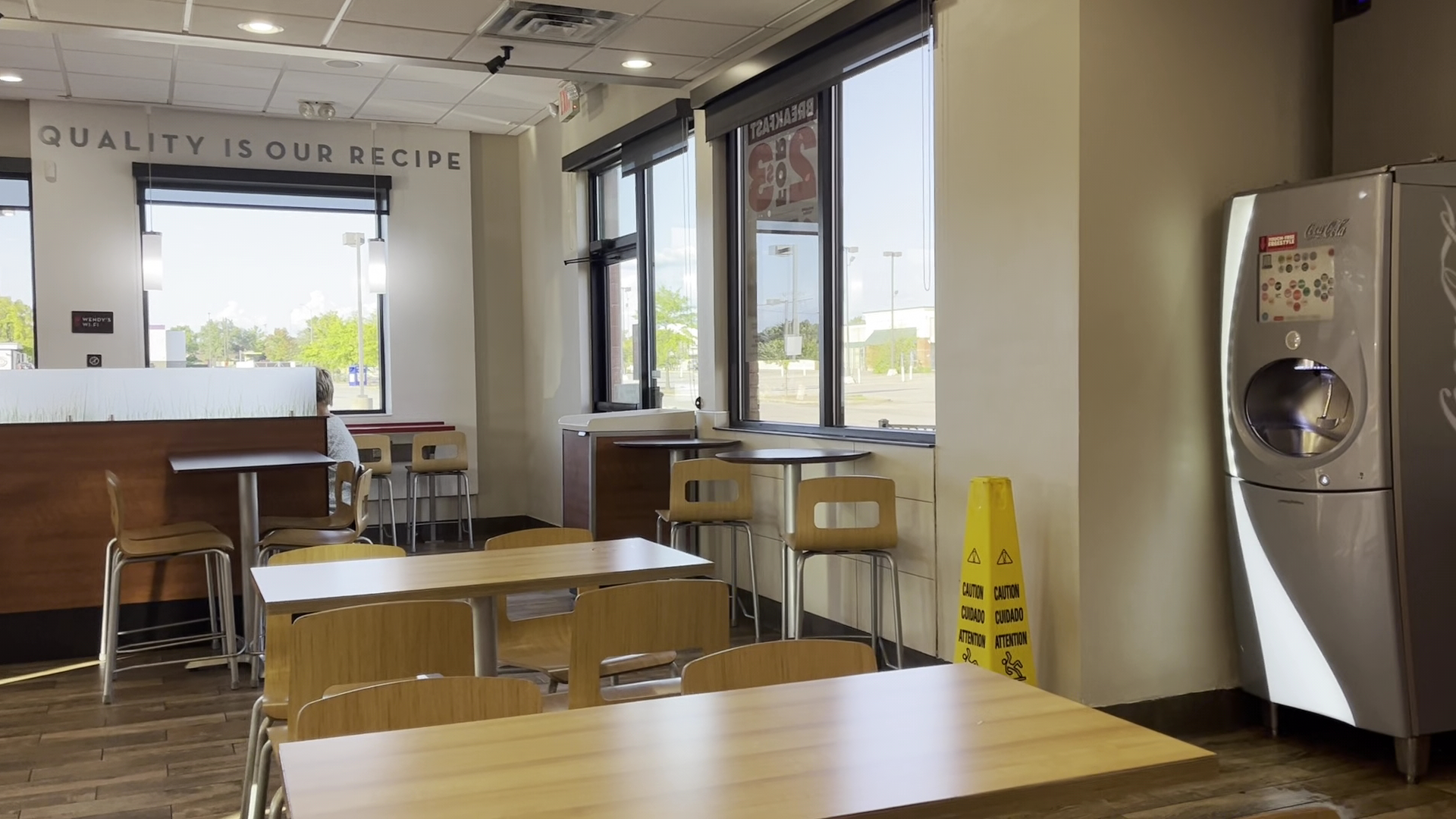 Read moreMy fiance and I went here tonight. We waited in line inside for several minutes because the employee taking the woman's order in front of us was all over the place and couldn't stay at the register for more than five seconds. He finally finishes the woman's order and we step up to the register... the same employee would look at us, look away, look back at us, and then he finally stepped up to take our order. My fiance had to repeat the order multiple times to the employee before he was finally able to pay. We step to the side and when I look at the receipt I noticed that the order was wrong and my sandwich wasn't rung up as plain. My fiance goes up to the counter and had to pretty much flag down the same employee to tell him about the order being wrong. Mind you, my sandwich was the Dave's Single. The employee tells the grill to make just a plain cheeseburger. I get a tiny, cold cheeseburger back. The Dave's Single costs over $4 and I got a $1 burger back. My fiance was already ticked that that same employee had touched our Baconator fries with his bare hands and it had taken forever to get our food to begin with so I just threw the sandwich away and we left. That employee was so terrible that even the manager was aggravated with him. The restaurant was not that busy, either, and we waited forever for our food and for my sandwich to be "fixed". We'll definitely be avoiding that Wendy's...