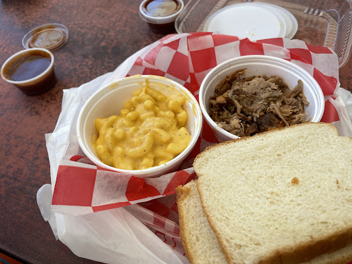 Read moreWe ate here twice during our stay. It was good but the second visit wasn’t as good as the first. First time, we got the kids shrimp with collards (veggie of the day) and my husband got the jumbo pulled pork BBQ sandwich. We both enjoyed our meals. The guy that took my order the first visit was nice and friendly. It didn’t take very long to get our food but they weren’t really busy. The second visit, the girl taking orders wasn’t rude but she wasn’t very friendly either. She must’ve been having a bad day. She had a bit of attitude and was mumbling stuff behind the counter and was actually kinda hateful to the guy in front of me but she was friendly enough to me. They were busier so it did take longer to get our food but it wasn’t terrible. We got the same thing except they didn’t have the collards so I tried the slaw. The slaw was not great at all. I didn’t like it and gave it to my husband and he didn’t like it so it ended up in the garbage but the rest of the food was good. The bbq was tender and didn’t have hardly any sauce on it so that was great that you can add as little or as much sauce as you want. It wasn’t smokey and that’s a huge win in my book. The only complaint I have about it was that it would’ve been nice to have it chopped up a little more and not just huge long chunks of meat but I guess I could’ve taken it off and chopped it myself. The wild Georgia fried shrimp were good, not too heavy like a lot of fried stuff and had good flavor. We would...