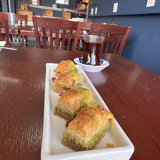 Saw this restaurant came up as a halal option. Called and confirmed that they serve halal meat. When we arrived there was only 1 other party seated. We were immediately seated and given menus to look over. We once again confirmed they served halal meat. The waitress confirmed they do, however the wagyu beef special was not halal, but everything else was halal. I was still skeptical about the halal meat because they were serving alcohol. We were given 2 bottled waters which seemed weird as we did not order bottle water nor did we want to pay for bottled water. When we got the bill, we were not billed for the bottled water. The restaurant provides complimentary bottled water as they do not find the local tap water to be safe to drink. We ordered the baba ganoush appetizer and found it very tasty. My wife ordered the Iskender Kebab Platter and I ordered the Falafel Platter. My wife enjoyed her dish, but did find there was a little too much yogurt in her dish. My Falafel Platter was served on a pita with only 4 falafel balls cut in half with roasted zucchini & peppers on top and a drizzle of tahini. The plate tasted great, but for the $16 price I would have preferred a bigger portion. The waitress who is the chef’s wife stated the price was high because they use organic products to make their food. As it was our anniversary, we finished off with the pistachio/ricotta cake which wasn’t bad, but nothing great. Overall it was a different experience, but nothing a...