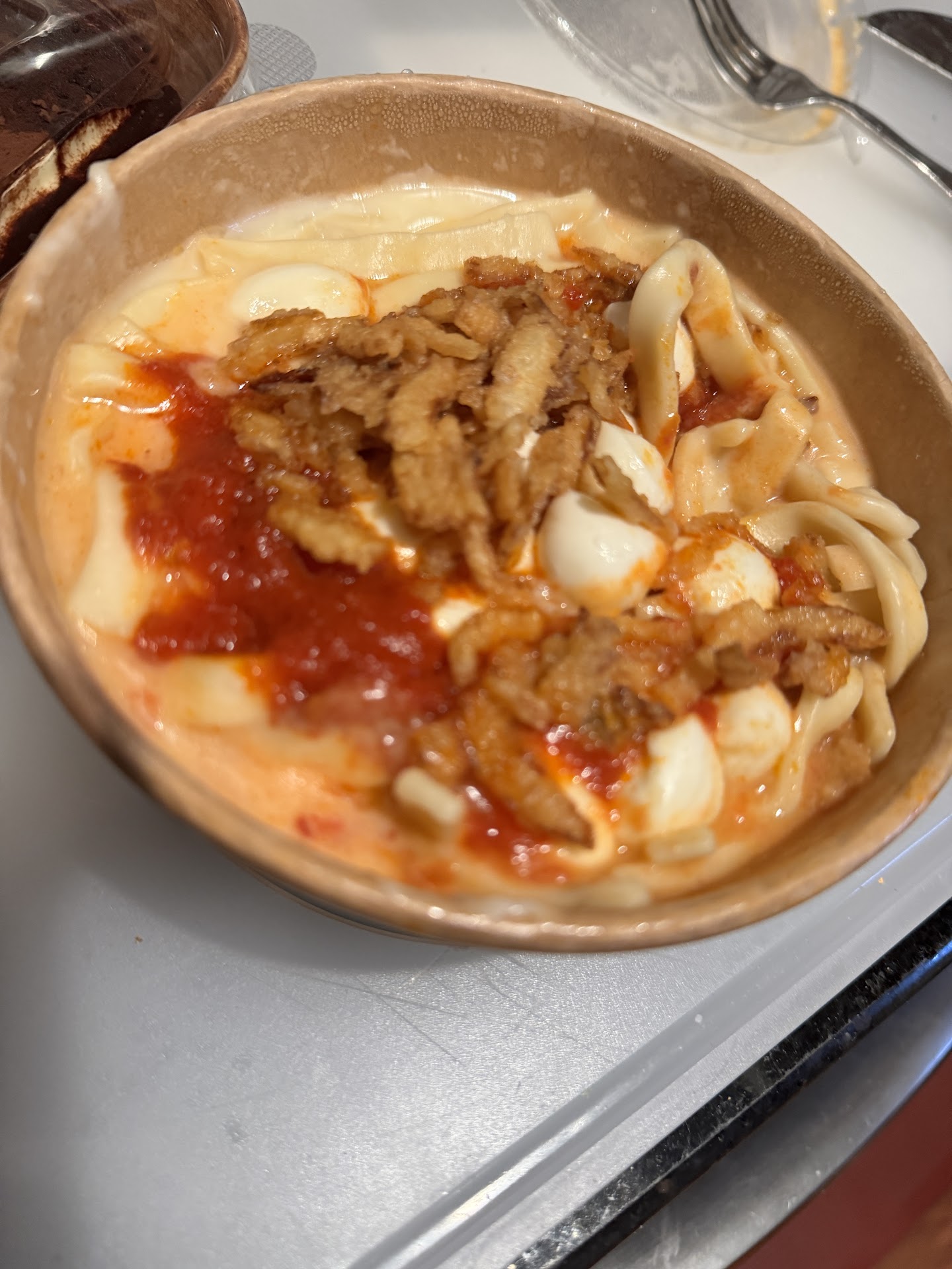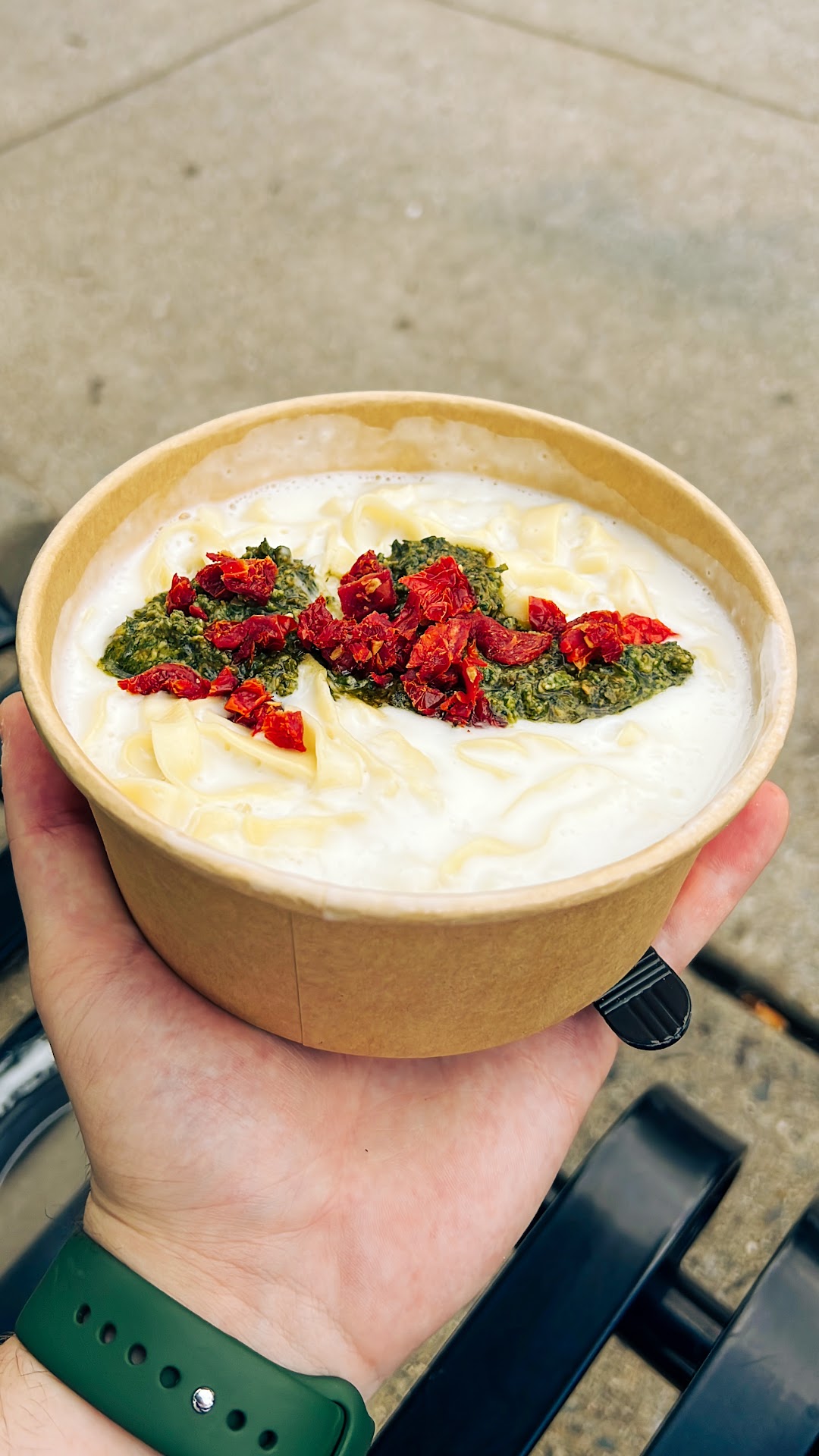 I took a chance on his fresh, handmade pasta with Alfredo sauce—and I’m glad I did. The pasta was tender, the sauce was rich and creamy, and the small dollop of pesto on top added the perfect kick. A bit of fresh mozzarella melted into it, pulling everything together beautifully.