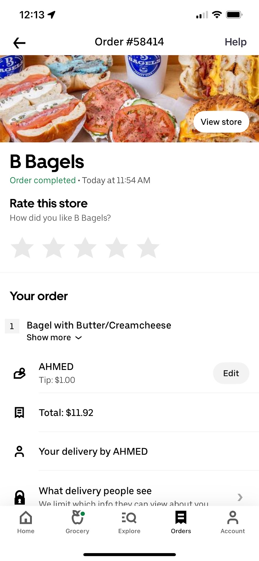 I never demanded that your employee personally deliver the bagel â I simply asked if there was any way the correct item could be sent, since the mistake wasnât mine and I had already paid for both the item and the delivery. I understand there may be limitations with Uber Eats, but that wasnât communicated clearly. Instead, I was told my only option was to drive to the store myself. That just doesnât feel fair.