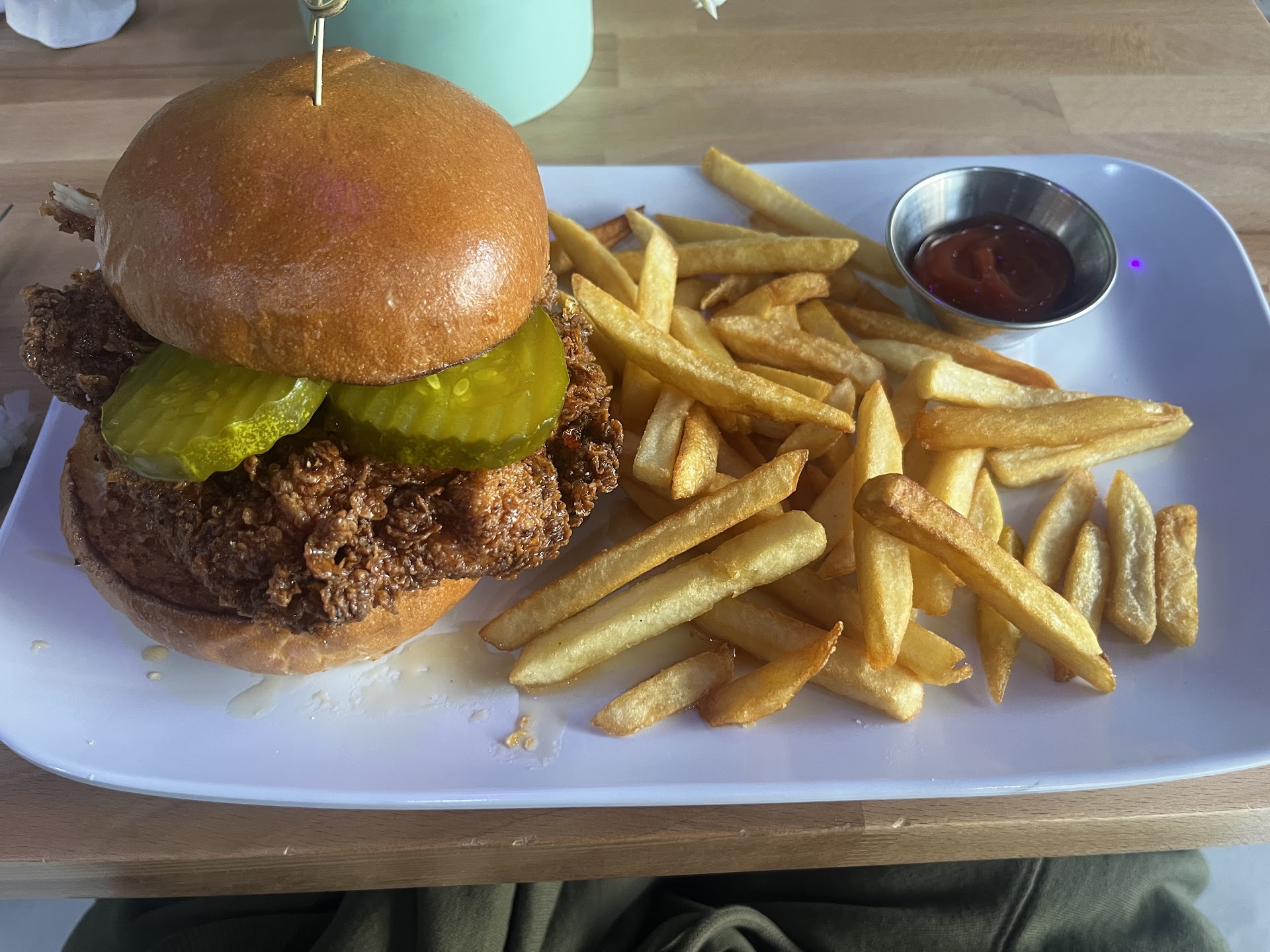 Besides my craving for that French toast, I keep comparing every burger Iâve had since to their Chopped Cheese Burgerâwhich, seriously. So good. The meat was incredible, flavorful and an awesome homage to a New York classic! I also had their Fried Chicken Sandwich, which was crunchy and delicious. I have to mention how good their burger buns are tooâa good bun is a little hard to find, but these were airy and not that weird chewy texture that a lot of buns tend to have. Super good!