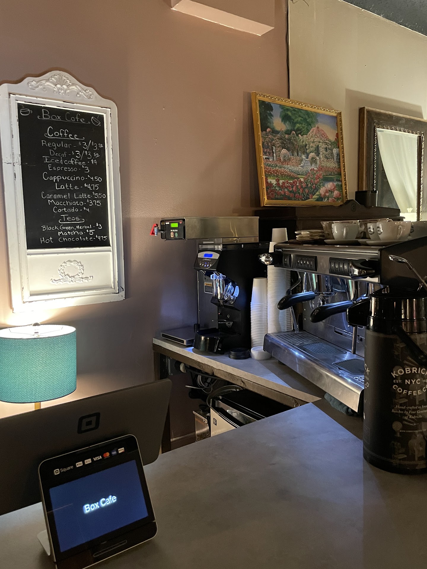Went here with my mom, she wrote this review and I agree completely. I especially love the decor, ambiance and energy of the owners. We were fortunate enough to have the most scrumptious meal Friday night at the brilliant Box cafe in Jersey City! Everything about the evening was absolutely Sublime! The food was beyond delicious! I had the salmon with mushroom hash and brussel sprouts and arugula salad! Every single mouthful was like magic manifesting in my mouth! The salmon was done to perfection and literally melted in my mouth, combined with the two side dishes I could actually taste the love embued in every bite of this food! My kiddo had the fillett herbed roasted potatoes and paprika corn! She loved the dish as well! We are both extreme Foodies and can honestly say this was one of the best home cooked meals we've had in a long time outside of our home! The decor was so quaint and exquisite, the vibe is unique, artistic and beautiful, our Hostess / owner Linda was truly so kind, engaging charismatic and welcoming. We had the opportunity to thank the chef in person as well which felt most necessary after this delectable meal! This dinner was magnificent on so many levels, we had to try the chocolate cake for desert! The dark and milk chocolate cakes were divine!!! So good in fact we took one of their flourless chocolate cakes home for a treat tonight! As a longtime Jersey resident of almost two decades I can honestly say this was our best meal out ever! The entire evening was a huge success and pleasure! The atmosphere at Box Cafe is so fun and relaxing and joy filled! We will be back for sure and plan to make it a regular in our dining out...
