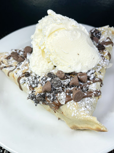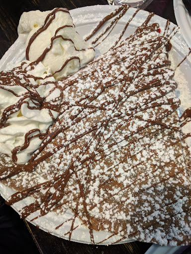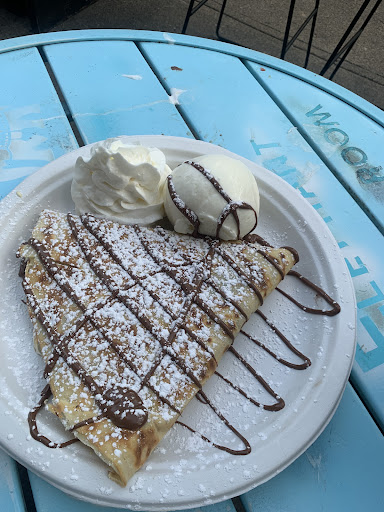 We tried the Veggie Supreme and the Nutella Batter dessert crepe. It was my first time trying a savory crepe. The Veggie supreme was flavorful and very filling, an ideal sandwich to have on the go for lunch/dinner. I wish I ordered some hot sauce with the veggie supreme, as I tend to prefer my sandwiches slightly spicy. The best part of the meal was the Nutella Batter dessert crepe. The crepe batter itself had nutella in it, along with that the topping of strawberries and nutella with whipped cream & ice cream on the side was a perfect dessert. If you like chocolate, this would be THE crepe for you. I wouldn't ask them to change it ever, it was just fab.