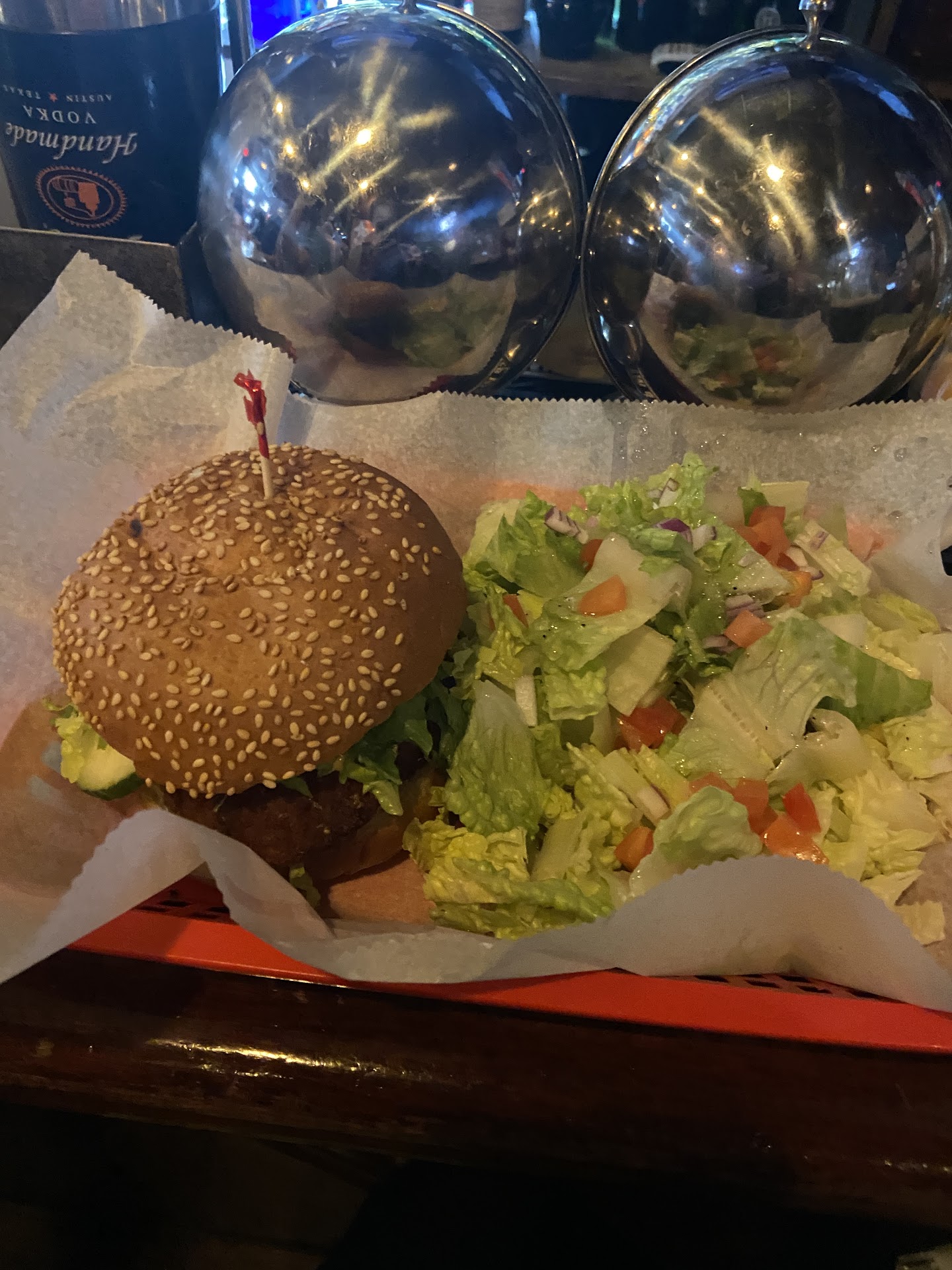 9 and c gets a 3 for our brunch, bit I'm giving a 4 because I think they were having a short staff problem and I'm giving then the benefit of the doubt because while our food took forever, the staff was very nice and the place had such a friendly neighborhood vibe. They also get a bonus point for being dog friendly. As litteraly every other one of the dozen patrons knew each other and the staff by name, this is obviously a friendly neighborhood place popular with locals. It had a very Cheers feeling. Service was very friendly, but very slow, apparently because someone didn't show up for work. My mimosa was good but forgettable though my wife got a bloody Mary and was asked if she wanted a "bloody Irishman" instead which is basically two times the size and stronger. She said it was fantastic. Drinks did also take a very long time to come after ordering though food took almost an hour. The burger was good, the meat was top quality and very well cooked, but it was missing seasoning. The homemade coleslaw was superb though. The stuffed French toast was very good as well. The blueberries and crenam cheese were great though it was an incredible amount of food. The bacon on the side was ok but definitely packaged. The staff was very friendly, and brought our dog water, but it would have gone a long way to offer any sort of appology for...