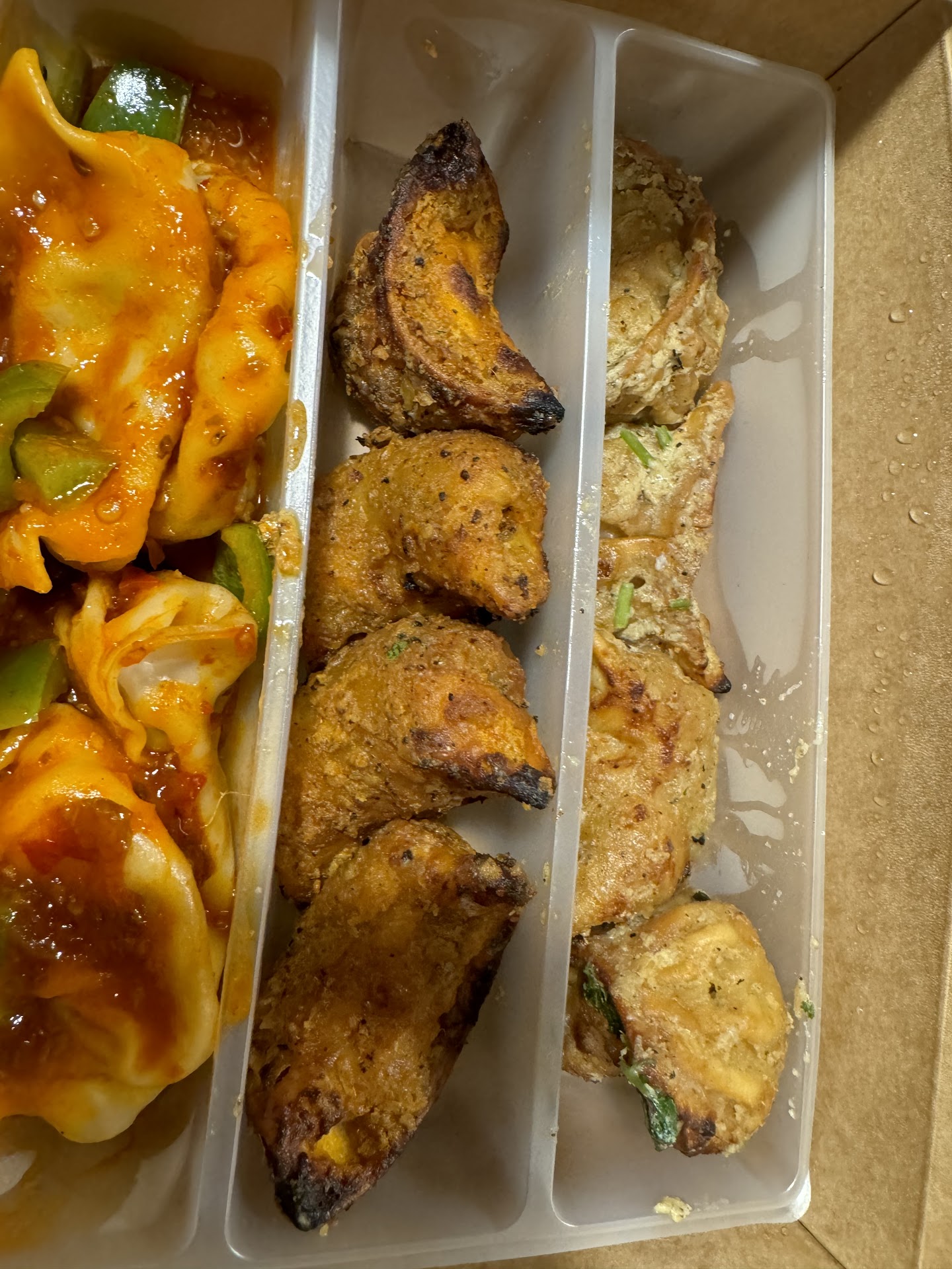 While walking along Central Avenue today to grab food from another restaurant, a sign for Momos caught my eye. As a momo enthusiast who usually treks to Jackson Heights for my fix, I couldn't resist trying Fomo Momo—so I decided to get more food. I opted for the assorted platter for $23, which allowed me to choose three different types of momos. I went with the vegetarian Schezwan, Afghani, and Achari momos, receiving four of each. They were absolutely delicious!