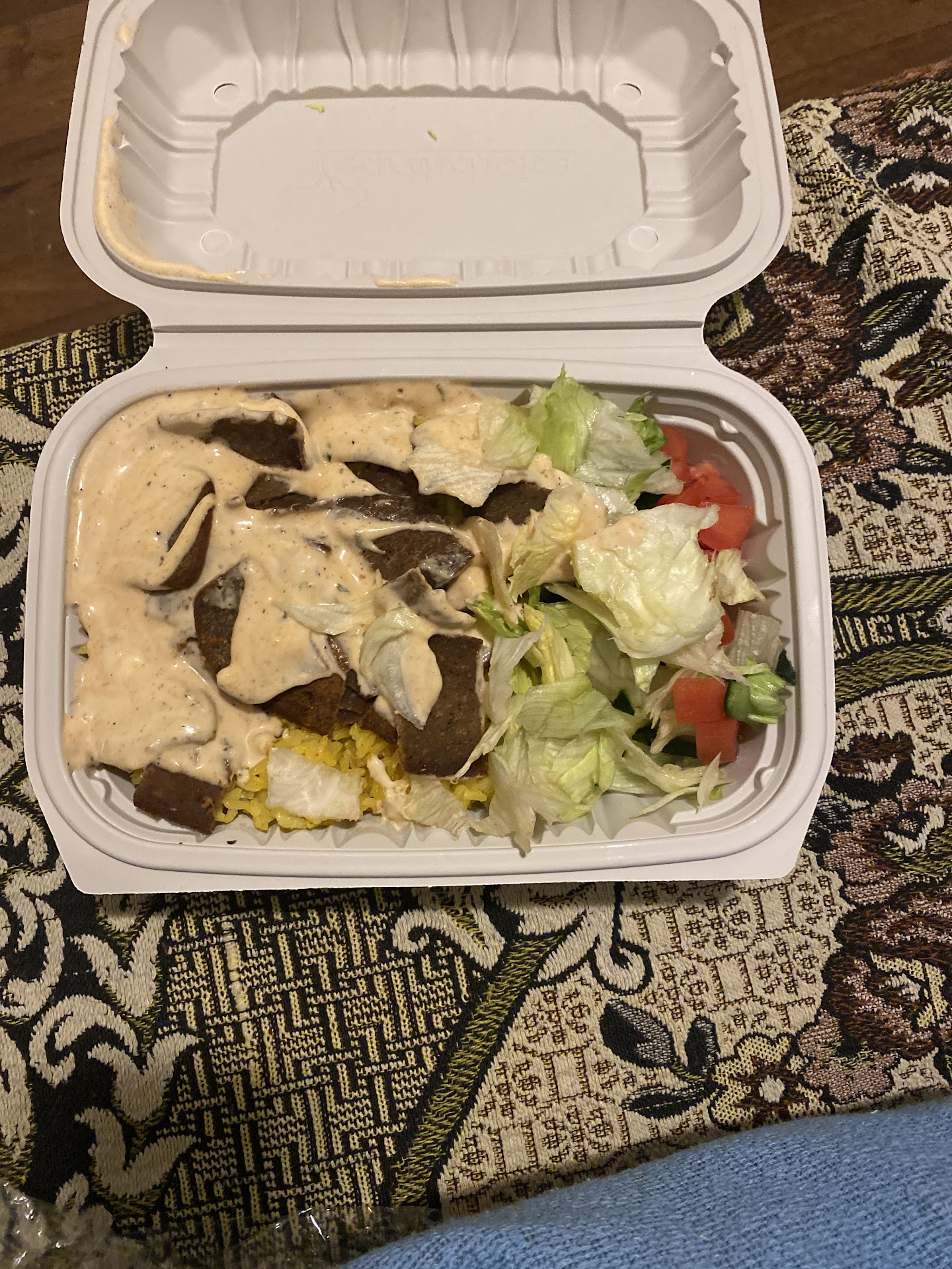 I don't typically leave negative reviews, but this is worth it. Simply put, this was the worst "halal" food I have ever had. The rice was clumped together, somewhat stale, and practically tasted of turmeric alone. The meat was clearly not fresh and likely frozen then reheated (context below). The salad consisted of old dry lettuce and was topped with fries?? Finally, the white sauce is unlike any I have ever had before, in the worst way possible, and the hot sauce provided was Franks Red Hot Sauce... for what is advertised as halal food, mind you. I am not surprised at the poor quality given the context I had going into this order but was still taken back.