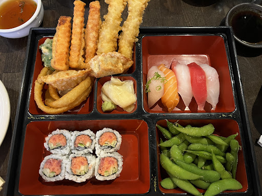 Food - I got the salmon teriyaki bento box and husband got the sushi sashimi combo for 1. Salmon teriyaki was overcooked and absolutely drenched in teriyaki sauce as if to hide the subpar dish. Tempura medley in the box had a heavy batter rather than a proper light and airy. Tempura sauce wasn't correct. California rolls included with the dish had very dry rice. Sushi sashimi combo - quality of fish was lacking significantly. Miso soup was adequate.