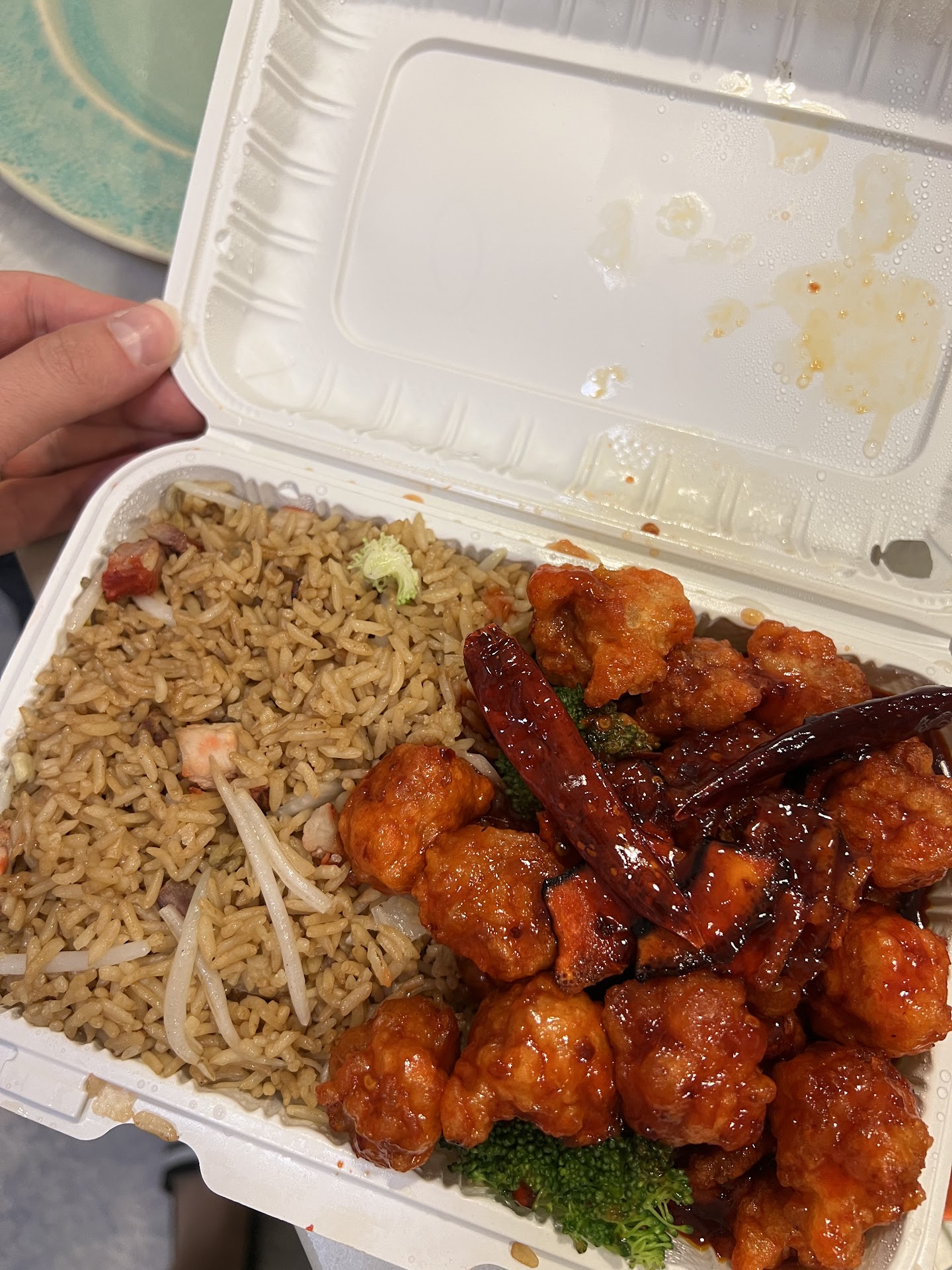 The comboâs come with pork fried rice, bottled water, and egg roll. The egg roll tasted stale. The fried rice was good. We enjoyed the Crab Rangoonâs as it was a good ratio cream cheese to crab. The Pork Lo Mein was oily and didnât have a lot of flavor. The General Tsoâs Chicken was good but the Orange Chicken was dry. Overall the food was decent but not good enough to want to order from here again....