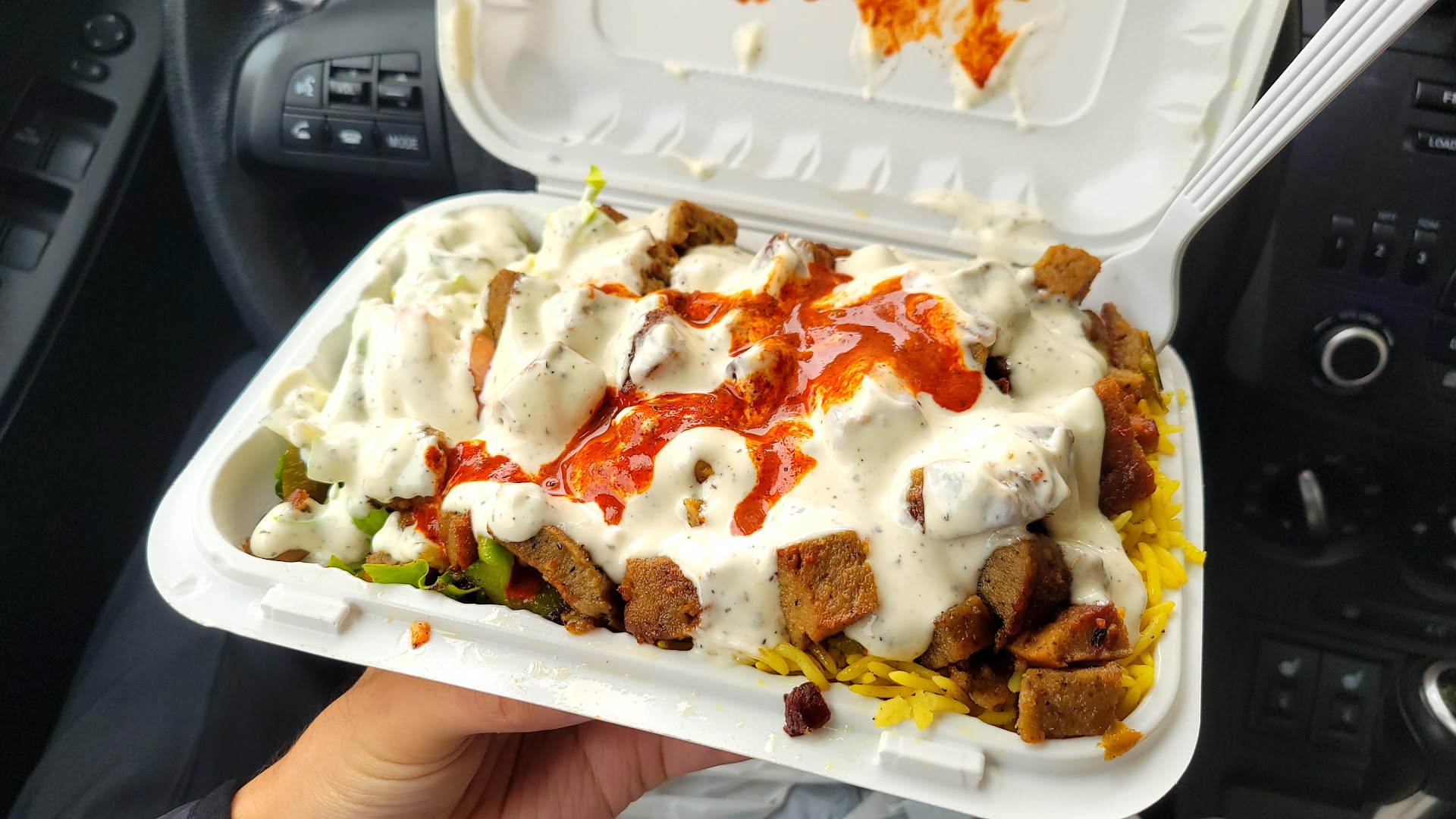 Read moreIt's one of the busiest food truck in the neighborhood. The reason for that is something we find out after we take the first bite. I have ordered chicken over rice, kebab over rice, falafel over rice and till now I prefer either chicken or kebab over rice. If you are a vegetarian then this place isn't for you so just providing a precautionary warning, as I didn't find their falafel too satisfying compared to other items on the menu. Their white and red sauce is really good. The food truck is easy on pocket and the quality is also good, so if you are willing to stand in a line for a while then it's worth it else just order a pickup from Uber eats and you can collect...