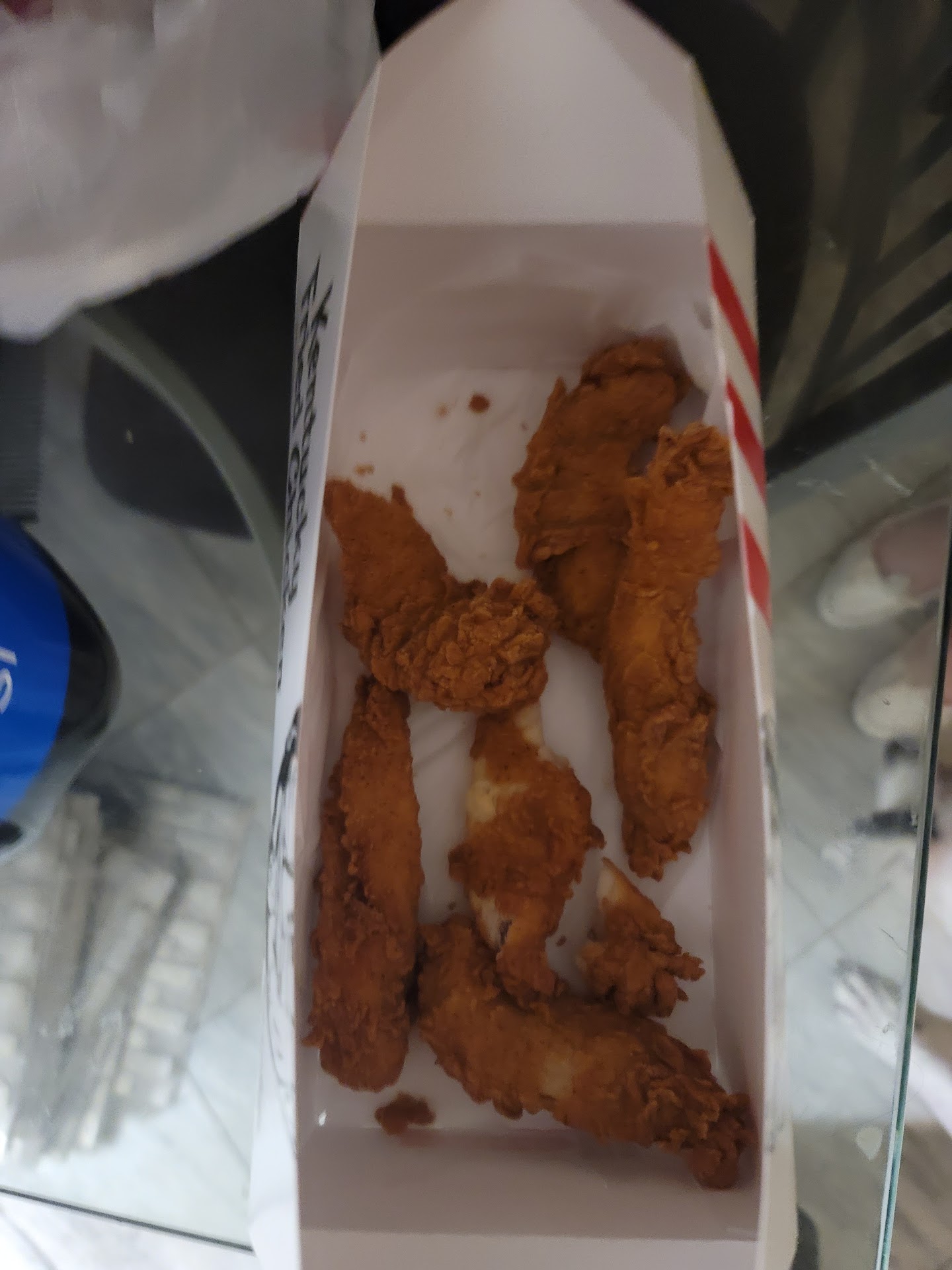 Now I was expecting greasy and salty chicken, but everything from the extra crispy chicken parts to the chicken tenders tasted just right. Although the side mashed potatoes and fries were infant-sized, they hit the spot.