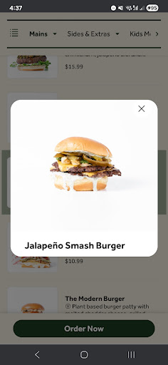 Read moreVery disappointing first experience. I ordered the Jalapeño Smash Burger, but when I opened it at home, there was nothing inside except two patties — no toppings, no sauce (in the pic what you see inside were jalapenos and onions I put myself inside the burger since there was nothing!). The patties themselves were burnt and dry. Before writing the review I sent photos and an email to the restaurant, but never received a reply, after more than 2 weeks.