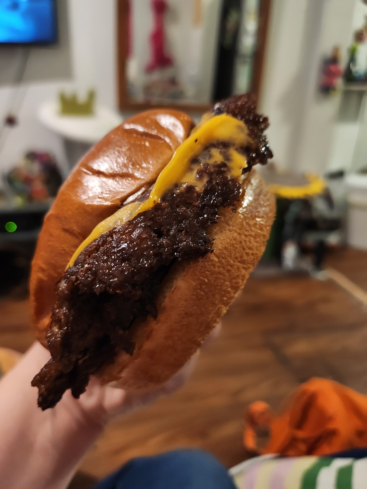 This place makes the BEST smash burger in Jersey city, hands down! I work in the square and have to convince myself not to eat one every time im there. Look at that malliard reaction! (the yummy seared crispness on the patty, not on one side like shake shack but all over!) They also have a jalapeno smash that is so delightfully spicy. The khokha sauce comes in 5 different heat levels. I've also had their chicken sandwich which was very good just a little messy, in the future I would order the sauce and coleslaw on the side for to-go. I haven't eaten inside yet but it is a very cute little spot with a few tables and everyone who works here is very friendly. I'll definitely be back to try...