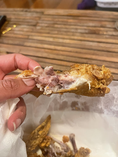 These new wings were reheated from a pan of wings (I saw the guy get them from a pan that was not even on a hot pot). THEN they were NOT flavorful at all. No seasoning? And for some reason the wings had blood in the middle? (Maybe this is normal but I have not encountered this before).