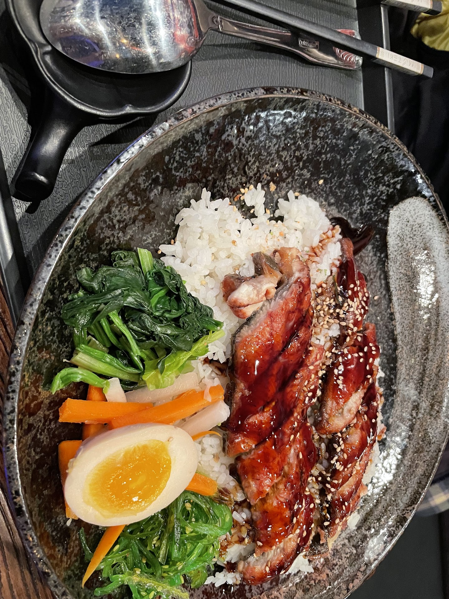 Restaurant was near empty when we arrived. We ordered the karaage as an app and the miso volcano ramen and unagidon. App came immediately which was questionable…but it was great. Good breading and tender chicken with a nice Thai sauce. Then came the unagidon which was a good portion. After about 15-20 mins with no one checking on us, I realized two other tables getting their ramen before me so I called for a waiter. Apparently they forgot the order and asking if I really ordered it saying it’s not in the system. I jest, saying no I’m just sitting here without an entree and looking at the other person eat for fun. Imagine making a mistake and trying to blame it on the customer. Management needs to do a better job addressing issues.