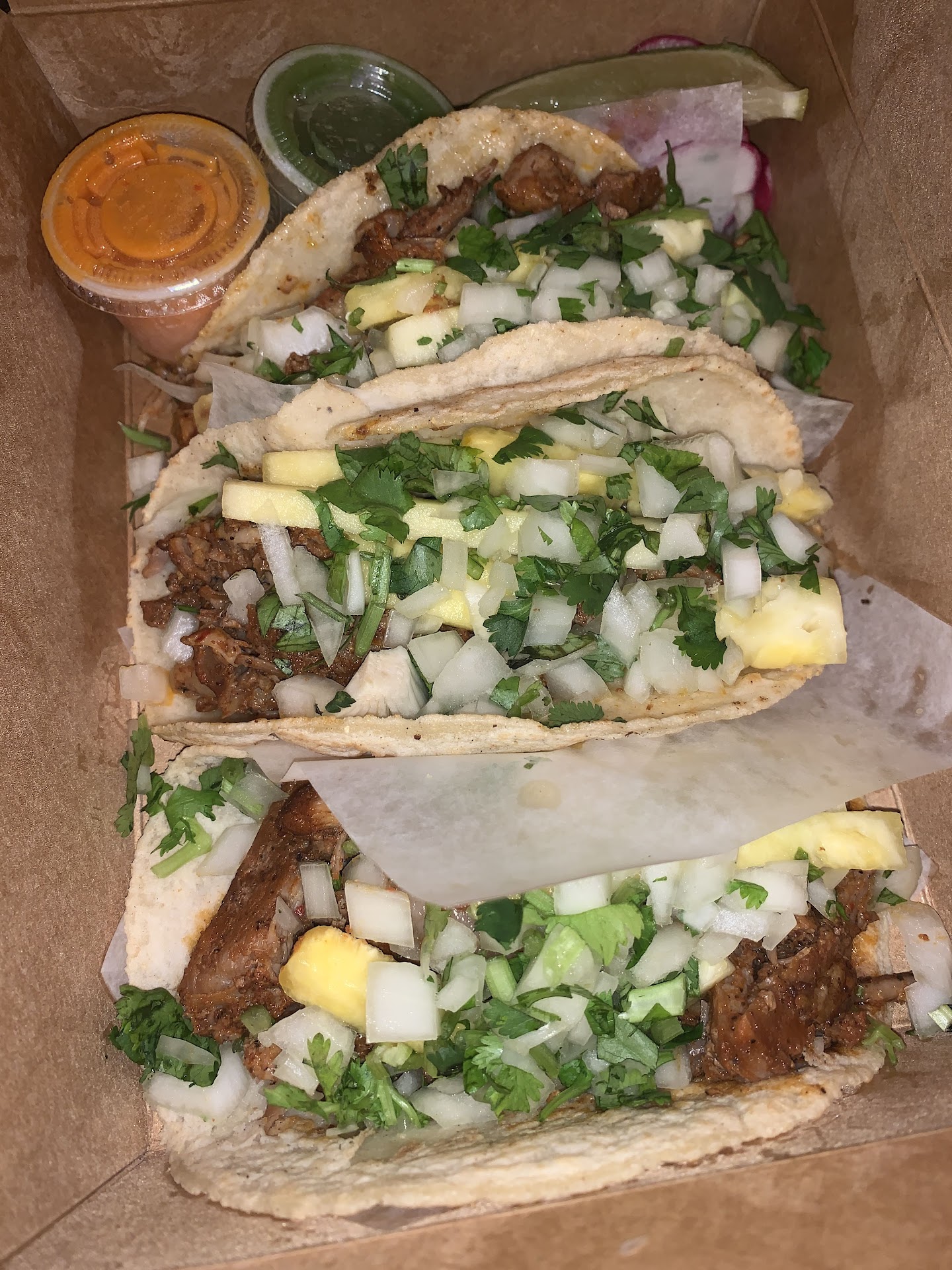 Al Pastor Tacos - these were great. Flavor was perfect and they don't skimp on the meat Chorizo Quesadilla - you really can't go wrong with chorizo or quesadilla Baja Style Crispy Fish Taco - this was my favorite of the group but probably also because I love fish tacos. The piece of fish in each taco was big, which I appreciated because I hate when taco spots give you the tiniest piece of fish and fill the rest of the taco with veggies Carne Asada Tacos - this was my least favorite. The meat was a bit chewy and it was also bland Carne Asada Fries - again, the meat wasn't great but the rest of the toppings were good. I normally don't like soggy fries but somehow, the soggy fries worked here. I'd like to see an al pastor version of the fries.
