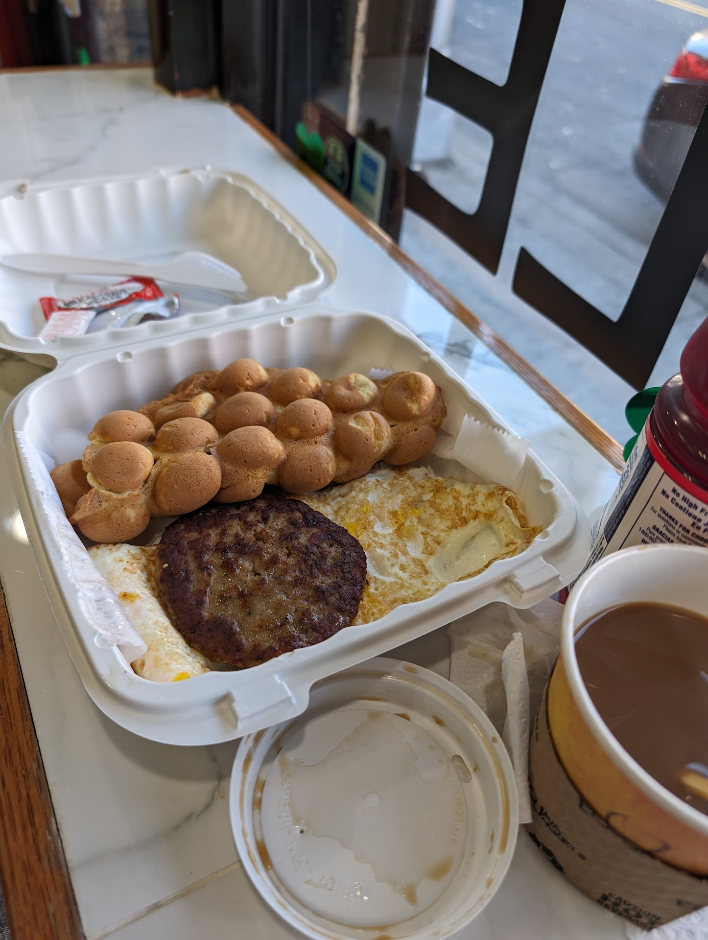 I ordered 2 platter of food online and the eggs and meat was cooked to perfection on both platters , waffle good but it definitely is different from a belgin waffle and home fries where good but where not the traditional tasting, and had alot of paprika and spices that will definitely wake you up! I would recommend added spicy to the homefries labeling so customers know what they are actually purchasing! But I don’t want to criticize you for anything because everything was very delicious and cook perfectly! I would eat here all the time and the prices are so fair i bought 2 meals ! Thank you for the privilege of...