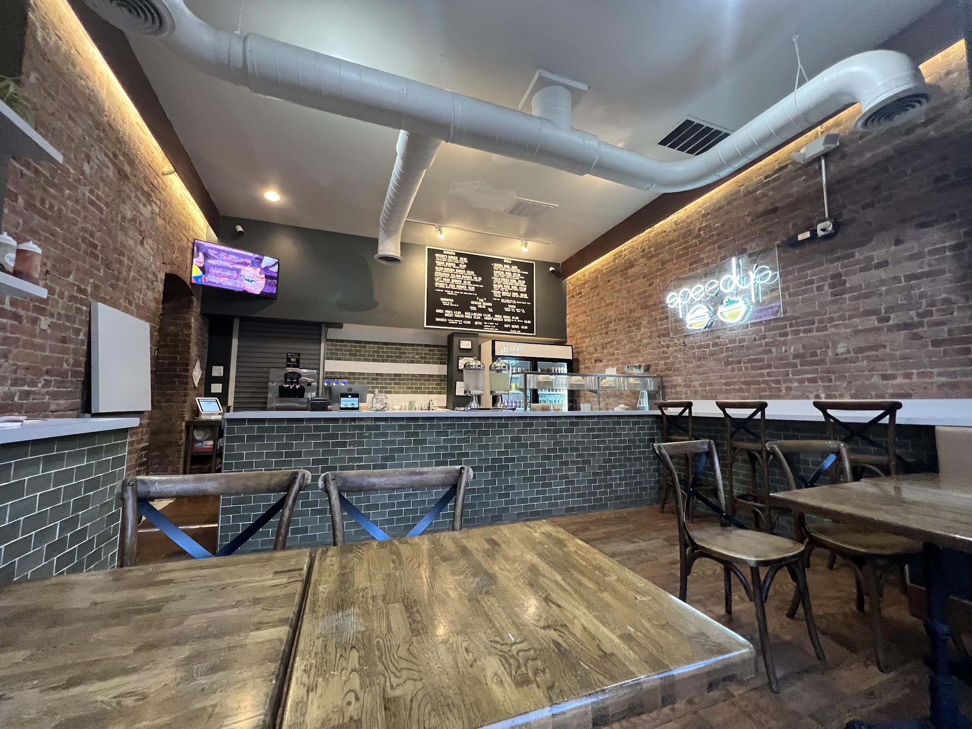 Welcome to the neighborhood! I've watched the signs go up and opening day has come. While a bit small inside for sitting and eating, there was a decent amount of space for standing and ordering.