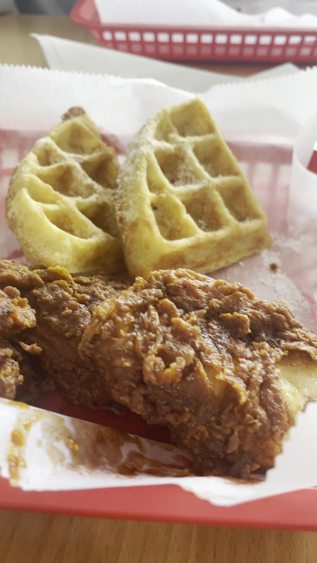 Ok, so I had no idea about Twinz in Jersey City until my friend decided that we should meet here for lunch! She was looking forward to their fried chicken salad, which they didn’t have that day, but she ended up going with the sliders, which she loved. I didn’t get to try it, but it looked scrumptious! Before I get into my order, I wanna say that this place is cute. It isn’t super trendy, but it deserves to be! They’ve invested into the decor by adding some cool slogans on the walls in relation to their food, they have a few tables, and a few stools. It’s simple, but really cool! When I placed my order, it was with a woman, whom I feel was one of the owners. She was super sweet and hospitable. I ended up ordering the chicken and waffles, which, I truly didn’t know what to expect. I mean, it’s chicken and waffles. I’ve had dozens of different interpretations of chicken and waffles, but girl….let me just say that the chicken and waffles at Twinz, is TOP 3! I said what I said! When my order was ready, I pointed out the steam from the chicken. It was JUST fried, child! Like, just now! I also pointed out the juice drippage from the chicken. It was an orangey color, as I asked for a medium spice level. I bit into this chicken and happily burned the roof of my mouth. Aside from its freshness, the flavor was SPOT.ON.! It was also juicy and crispy! And I must mention the waffles! These waffles were cooked to a science, hear me?! Perfect crisp edges, with the perfect fluffiness on the inside! These weren’t frozen, store bought waffles, girl. Not at all, these waffles were FRESHLY and CAREFULLY made with LOVE! My appreciation had to be expressed to the woman who took my order. I was blown away by my meal and she needed to know.