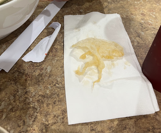 Hu tieu kho came with the broth and mixing sauce bowls placed INSIDE and ON TOP of hu tieu and all the toppings. This tells how low the bar for food hygiene is. There was also a piece of plastic cling wrappers mixed inside the noodle.