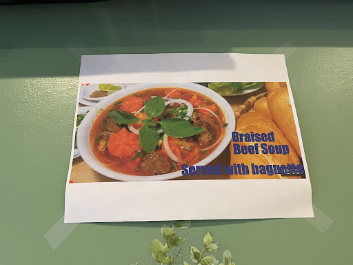 I came in on a rainy day. I saw a picture of Bo Kho on the wall and pointed to it, then paid for my order.