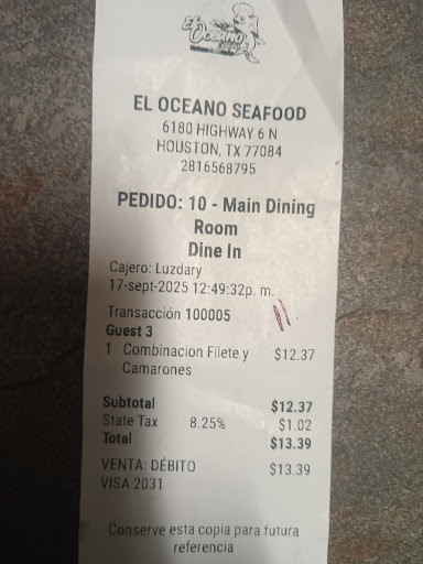 Read moreReally wanted to like El Oceano. The last place that was there did a great job remodeling, and El Oceano improved upon it, so was encouraged when we came in. Nice bar area. Several TVs with cumbia music playing, perhaps a futbol game, etc. We were promptly greeted and seated, and a tostada with a warm seafood sauce was brought to the tables, all agreed it was good. No chips, no salsa - not even available, don't ask. Water was never brought to the table, except when I specifically requested it, and then only 1 for 4 guests. The waitress did not speak any English at all. Fortunately, 3 of us speak Spanish, but it seems Venezuelan (?) Spanish and Mexican Spanish have some differences, and we had some difficulty with what she understood we wanted (two native Spanish speakers and current Mexican citizens). We had fried fish and shrimp plate with fries - they are those coated fries, not fresh cut. My daughter had filete a la diabla, it was good. Wife had camarones en mojo de ajo - also good. My wife and I each had the caldo de mariscos - I had a large, she had a small. $5 difference in price. Same size bowl. The caldo appeared to have frozen shrimp, pulpo and pescado in it as well as fresh vegetables; it lacked flavor, but was okay. The ensalada is cucumbers and a tomato slice with some tajin on it. I don't know if I would call it a salad, but it was good and fresh.