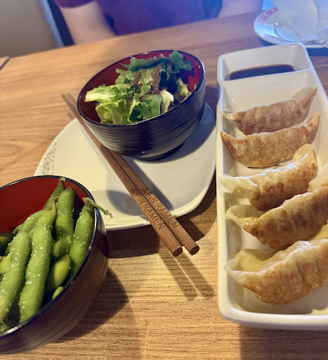 When it comes to the menu, there are many options and she is there to answer any questions or give recommendations. I’m a foodie, so when it came to choosing, my eyes are bigger than my stomach. Our order arrived promptly: Edamame, Spring rolls, Crab Rangoons, pan fried Gyoza, and Vegetable Tempura. The Edamame were perfect temperature and salted to perfection. The spring rolls were crisp and flavorful. Crab rangoons were full and creamy. The pan fried gyoza had a perfect texture and balanced well with the dipping sauce. The vegetable tempura was light and refreshing. My teenage son had the special Pin Ramen. It came in a bowl the size of his head with a long and well battered shrimp tempura. The color of the broth was a beautiful sunset color and the flavor was a good balance of spiciness. I had the Tonkatsu Ramen. I’m not lying when I say that was the best flavor Pork Chashu I’ve ever tasted. It had a bbq flavor, was tender, yet held its shape at the same time. It was like butter. The broth was peppery and creamy. Absolutely amazing.
