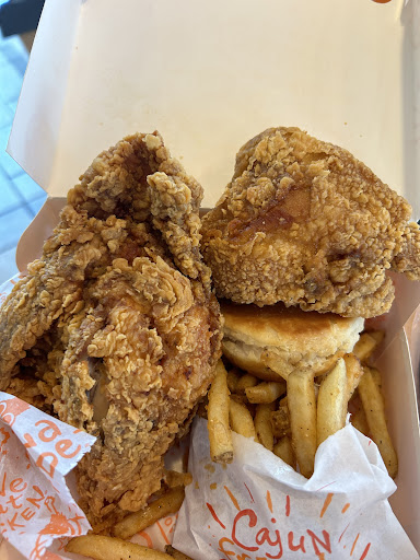 WELL where do I start. I came in with my family and was already getting bad looks by the people here. Let’s just say we’re not their color. I already felt like we were going to get bad service so I had placed an online order for our baby, AND then had my husband place an order at the counter just to see the difference between the food as well. SO us being Hispanic, my husband was spoken to like he was literally a NOBODY, attitude loud voice and all, and the repetitive “is that all” after every item he asked for. He asked for sauces and they came out with, “there’s a 27cent charge for each” again said with a nasty attitude. After he placed the order he waited a bit until he saw they were about give us our order that he ordered at the counter, then notified them about the mobile order. The lady rudely asked “YOU have a mobile order?!” Confused like if we couldn’t afford it. So he politely said yes ma’am. Surely both orders were ready at the same time. NOW the comparison, the mobile order was made FRESH and hot! Even had overloaded the fries, then when we opened our counter ordered items, OLD and cold chicken! Mashed potatoes literally a small scoop, fries, old and stale! Ok so now after that, we’re about to leave and low and behold, a family of their same race came in, the woman that attended my husband,.. attitude and tone of voice COMPLETELY changed! All of a sudden she had manners, and customer service etiquette. Oh wait! How about the part where they asked for sauces MIND YOU, I heard their order and nowhere did they ask for tenders or nuggets. And nowhere did that woman say that there’s an extra fee for sauces! Now you CANNOT convince me that they’re not racist here. So if you’re Hispanic just place a mobile order so you won’t have to deal with the rudeness and get your food fresh. As for me, I’ll be staying away from this location. We took a picture of my counter ordered items, but couldn’t get one of the mobile order since our baby was ready to feast. Popeyes, do better! Only one man that’s an employee there was polite, other than that the rest just give bad vibes, stares...