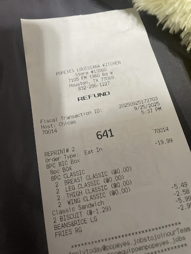 Read moreFor this to be a new Popeyes I was highly disappointed in their customer service. I literally called before I went to this specific location to see if they could make this specific order that I wanted. The specific order that I wanted was an 11pc chicken only, all legs and wings spicy. They proceed to tell me over the phone that to come to the location place the order in the drive thru and they will have it ready for me. Mind you before coming I repeatedly asked them if that was okay to do and they repeatedly said to come to the location and order in the drive thru and they will have it ready for me. So I pull up to this location and place the order as told also informed them that I was the one who called about this order. They proceed to tell me cost of the order and tell me to pull up to the window just to tell me when I get there that I can not place an order like that and I will have to purchase a 12pc mixed chicken meal with sides. Highly upset and disappointed. I took my...