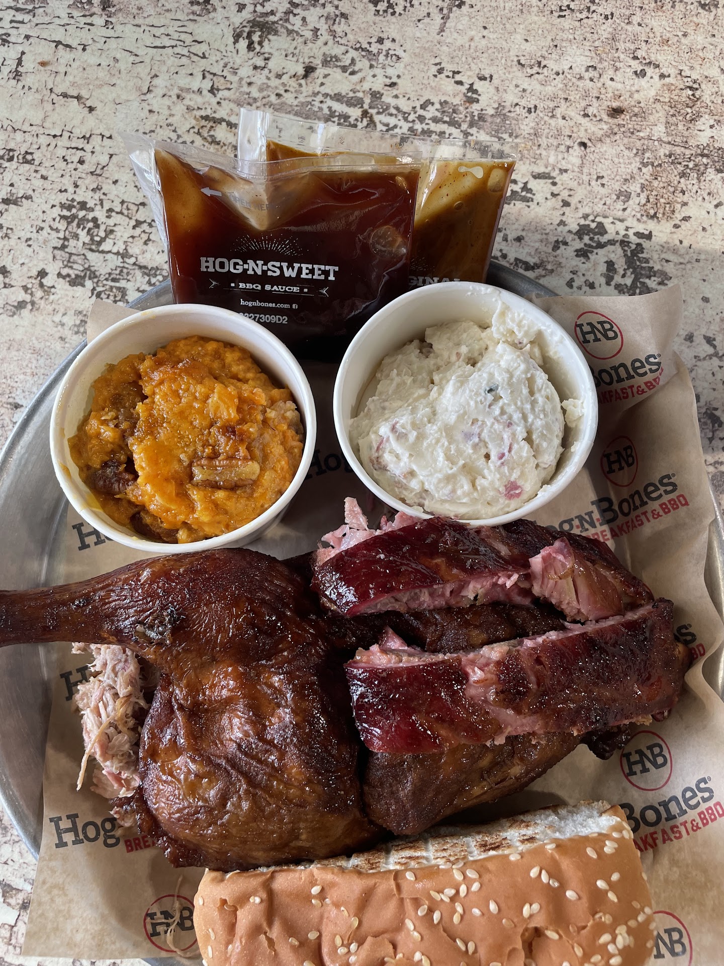 Ā Ā Ā Read moreI recently moved to Georgia this was my first time at Hog N Bones. I wasnāt sure what to order so I ordered a combination platter of ribs, pulled pork, and barbecued chicken called the HNB Sampler.