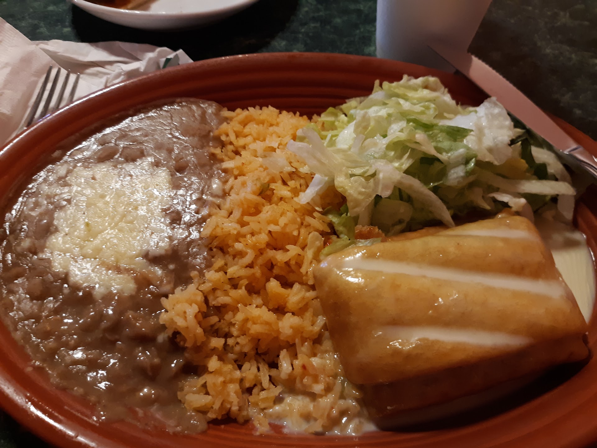 Read moreI keep coming back in hopes of improvement, yet I think this will be my last visit. My friends drove all the way from Chatham County for me to treat them to a nice birthday dinner; however, I & they were FAR from pleased and I was embarrassed! The silverware wasn't clean (had to request a glass of hot water), our chimichangas were very tough, the "spanish rice" looked & tasted like regular rice with A LITTLE red food coloring, they said the salsa was watered down (& it DID look like it), we asked that no lettuce be put on the plate of one of the orders (yet it was), and the refried beans were also watered down. On a positive note - the Tex Nachos (chicken, steak, shrimp & cheese on a bed of chips) was decent though. Lastly, the way the parking lot is set up, we had a sticky time getting out. So my advice is you'd better be very careful when...