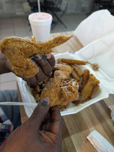 Food was decent. I do agree that the price was good for the amount of food I got. Kind of confused because I thought the lemon pepper sauce was a wet sauce, but what I got was either a dry sauce and they put very little or they put only a drop of the wet. Considering the place is called Lemon pepper, it’s disappointing that my wings were barely lemon pepper. I thought it was gonna be something amazing . My expectations were failed… I would like to come back and get catfish to try but I don’t think I will be getting wings again, and if I do I will get sauce on the side so I can actually taste it and have a decent amount. Fries were just basic frozen no seasoned fries so I’ll pass on those from now on. I don’t know if they deep fry the corn or soak it in oil but the corn didn’t even taste like corn. No flavor, soaked in flavorless oil and no season at all . They gave me a cheesecake that was all smooshed and fallen apart. Service was definitely not the best I told him it was my first time ordering . He seemed aggravated with my questions and aggravated that I didn’t know how to properly order. The way he was speaking to me was as if he thought I was stupid and I should know how that restaurant works even after I stated that was my first time. No help at all, asked for the 12 count bone in wings and he acted like he had no idea what I was taking about and said “I don’t see that nowhere where do you see that at” so another guy came on the mic and did it for him and corrected him. I don’t know if he was high out of his mind because he definitely looked like it but he only gave me 1 thing out of my whole order and told me to have a nice day and closed the window so I sat there until he came back and I told him he was missing over half my order so once again another guy came over and asked for the bag back and I had to wait 15+ more minutes to get my...