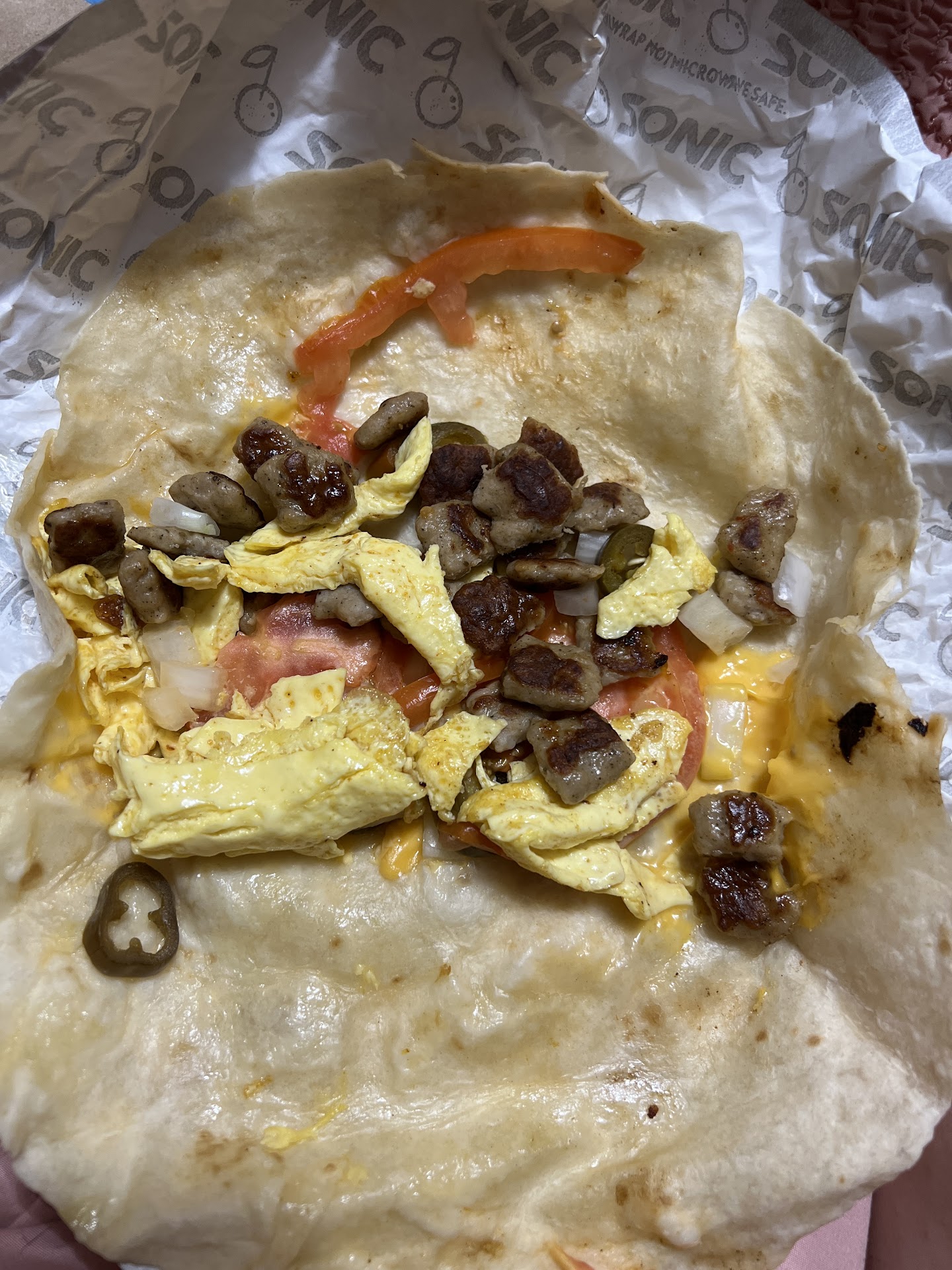 My husband and I moved here the beginning of April & this Sonic was the first place we went to get food when we got here after our 11 hour trip in a uhaul. So we parked in one of the stalls and ordered. The food and service were absolutely excellent! We even gave the car hop a big tip to thank her for the awesome service. We have since been back twice now, but we did drive thru the 2nd and 3rd time. Both times our orders have been done wrong after being asked to pull up and wait for the food. The burger I ordered today and the burger my husband ordered last time were both ordered the way they are supposed to come per the menu, but when we get them they're missing the onions or missing everything besides lettuce and tomato??! I get that mistakes happen but i worked for sonic when i was younger so i know they have charts to follow on how to make every sandwich sonic menus offer! So.... that means whoever keeps screwing up the sandwich and handing it out to the customers is just plain out NOT paying attention to what they're doing! Please do better! I'm so...