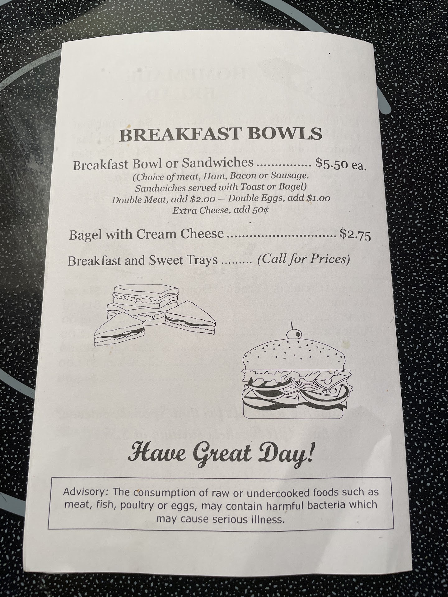 They run out quick but are constantly churning out fresh donuts. They do call ahead orders but only do so many a day in order to have some available for walkins, which should tell you something about how popular they are. Donuts, muffins, bars, cookies, bread, and more.