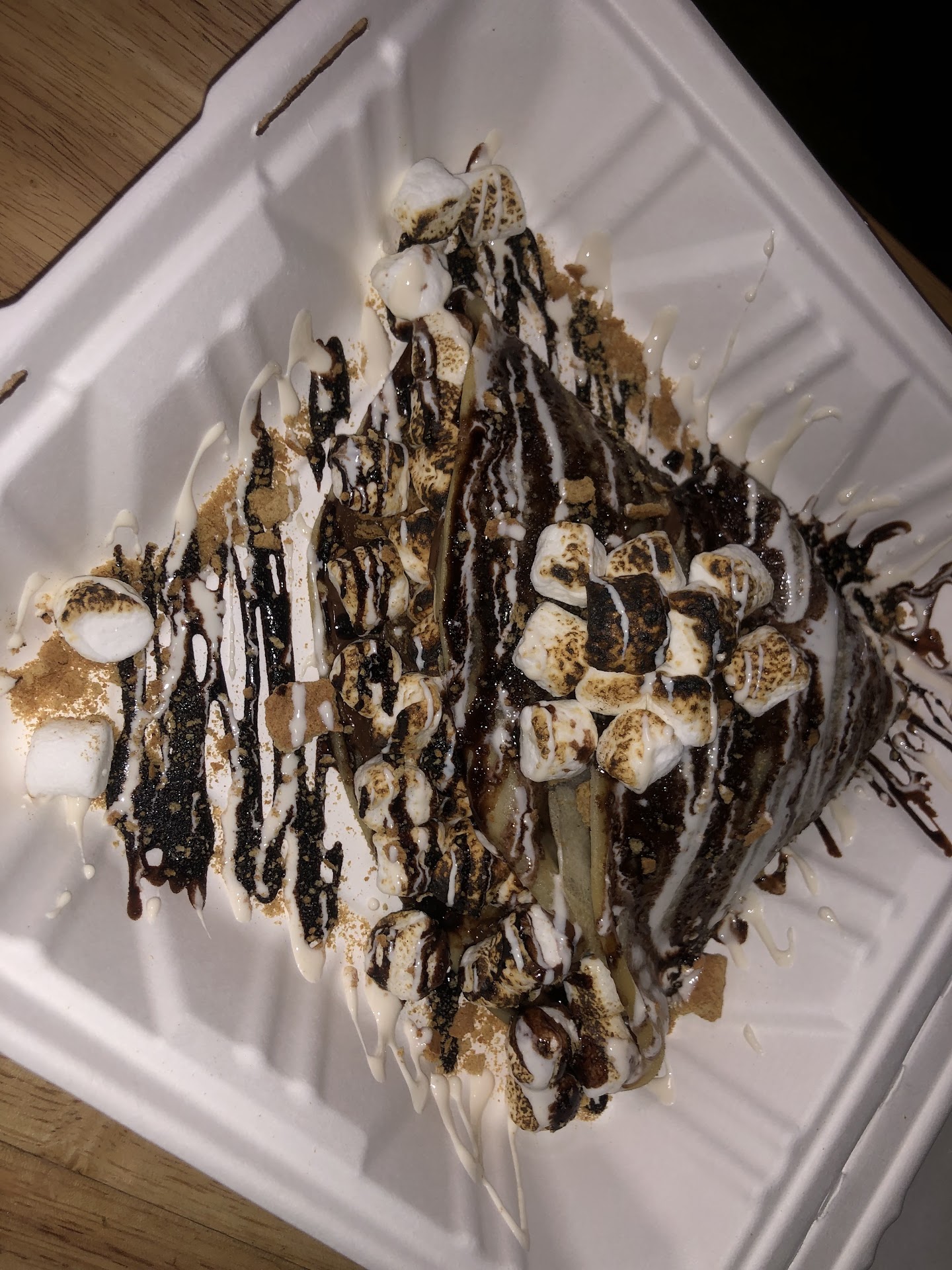 The crepes were quite tasty. My partner and I got the apple cinnamon crepe, The st. Patrick's Day crepe (Irish cream, vanilla creme, and a green crepe), and we got the manicotti crepe as well. Apple cinnamon wasnt anything too spectacular...but Hands down the manicotti crepe was the best crepe I've ever had (we try crepe places all the time when we travel).