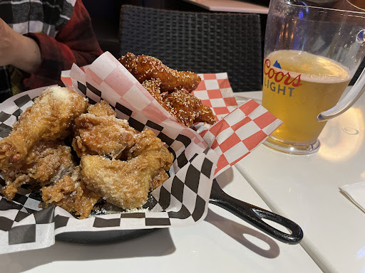 They have yummy Korean pizza and fried chicken! Their pizzas are soft and cheesy. They have different crust options like regular, cheese, or sweet potato. All of them are tasty 😋 Their chicken is so flavorful and addicting.
