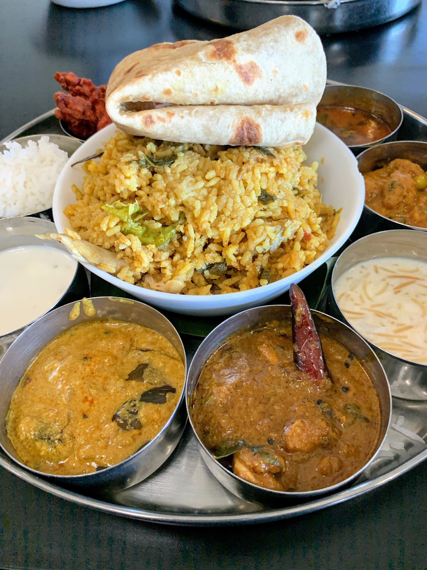 The biryani thali is comfortably adequate for 2 adults, and it come just at $13