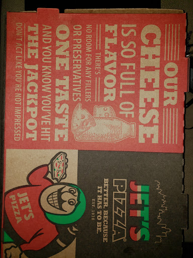Read moreALERT - OWNER LIED TO MY FACE - GO SOMEWHERE ELSE - PLEASE DON'T ENCOURAGE DISHONEST BUSINESS PRACTICES! Pizza here is ok - barely any tomato sauce. If you can choose another Jet's location, you are doing the community of a service. If you choose this location, you are facilitating dishonest business practices. I called in my order and made it VERY clear I was holding a coupon for a FREE SMALL PIZZA coupon and from CHATAHOOCHEE COUGARS in my hand and wanted to redeem it. I was told - OK, RIGHT! I also ordered a large pizza at regular price to reward them for SUPPORTING CHATAHOOCHEE HS. When I went to pick it up, the OWNER promptly told me that the coupon wasn't good at his location. The print is tiny. The entire coupon is about as big as the top half of your pinky. While it may be true that it wasn't for this location - THEY SHOULD HAVE TOLD ME ON THE PHONE CALL when I explained I have a CHATHOOCHEE COUGARS coupon book for a FREE SMALL PIZZZA. Instead, the OWNER deliberately allowed the small pizza AND a large pizza be ordered, full well knowing he was going to tell me the coupon was no good at his store. He claimed he couldn't TRAIN his employees to ask him which coupons are accepted at his location. I tried to reason with the OWNER and he was very rude and disrespectful. When I explained I was told OK, RIGHT on the coupon's validity, the OWNER said that I was told COME ON IN AND WE'LL CHECK IT OUT. This was the LIE that he told STRAIGHT TO MY FACE. GO SOMEWHERE ELSE - PLEASE DON'T ENCOURAGE THESE TYPES OF...