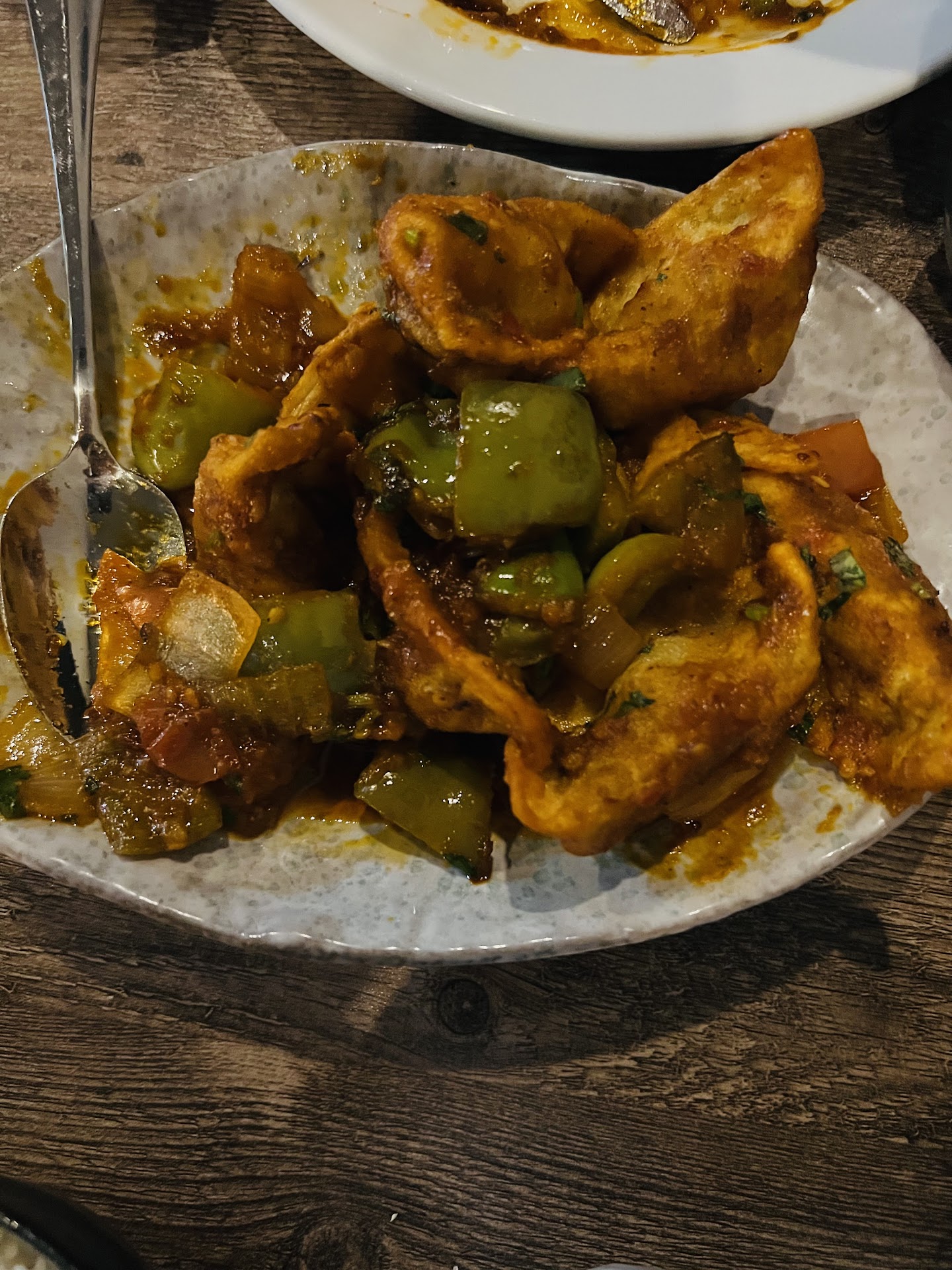 Ordered paneer tikka masala, vegetarian Manchurian, samosa & garlic naan.