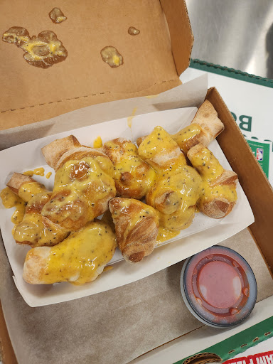 Read moreThe customer service could be better. I picked up an UberEats order around 4pm on Feb. 23, 2024. The young man at the register (maybe 20-22 years old) was very aloof when I realize after walking out to my car with 3 boxes of pizza that the garlic hadn’t just spilled slightly onto the cardboard, but was spilling everywhere, getting on my hands, pants, and Nike half-zip pullover ($70).