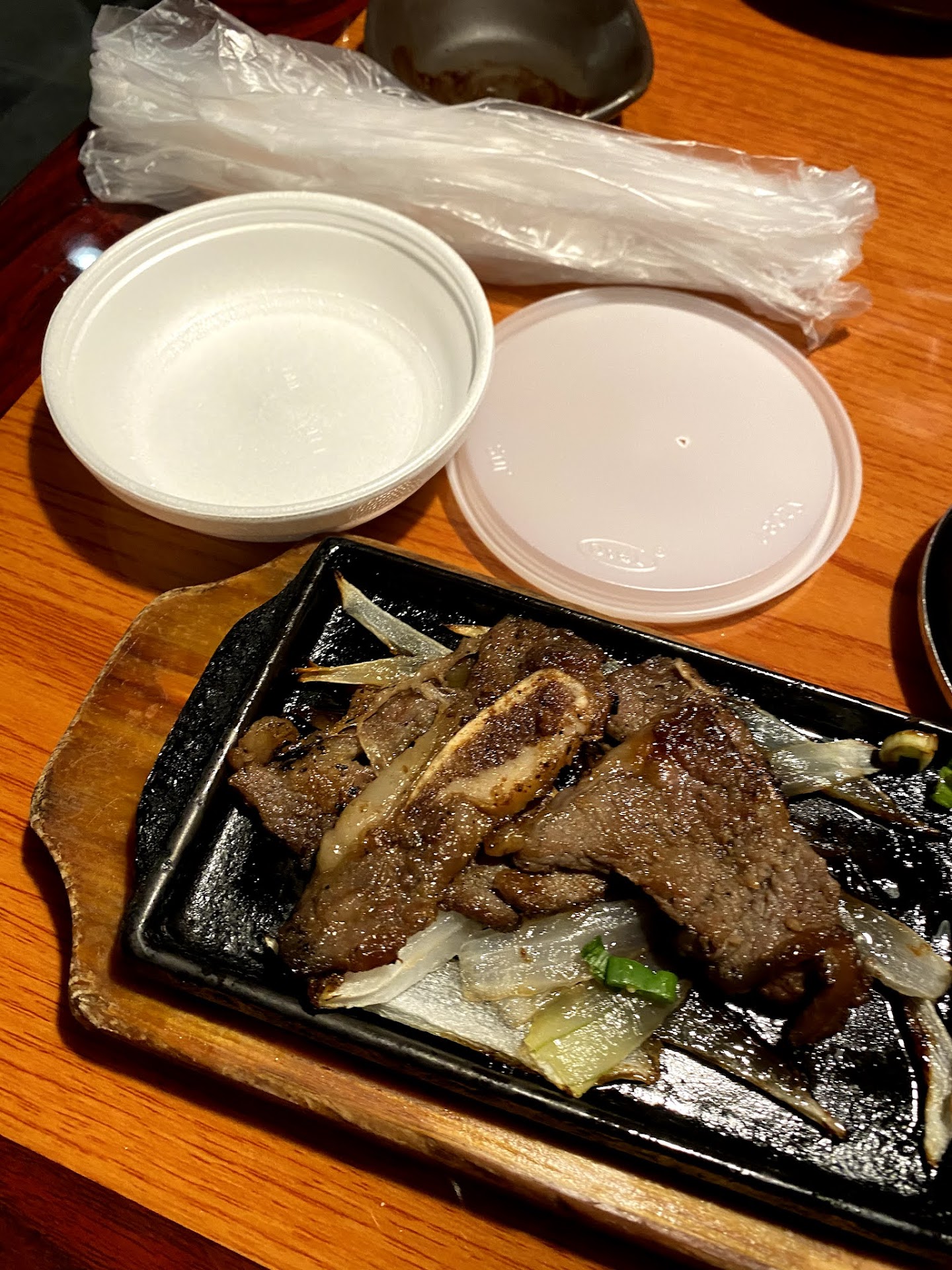 Then she FOLLOWS me to my table to inspect what I need the containers for. We had a refill of banchan/side dishes that we ate and had a little leftover - I felt sorry to leave it since it would be thrown out. I asked if I could have a container for the banchan and she said "No. Banchan can't be taken to-go." It would have gone in the trash anyways so why does it matter if it's in my stomach or if I take the leftovers home? How wasteful. And THEN before we could say anything else she quickly cleared the table of the banchan on purpose so we couldn't pack it. Then she tried to take my galbi to pack it. I told her I wanted to pack it myself because I didn't want anyone touching my food due to COVID. And still she tried to insist on packing it and didn't seem to want to let go.