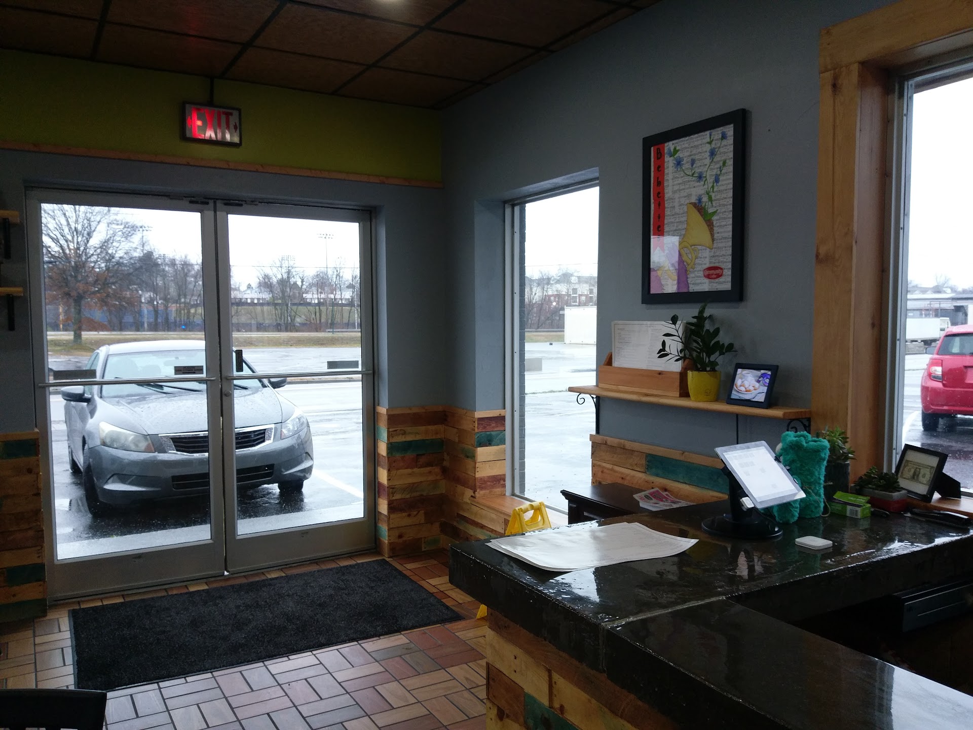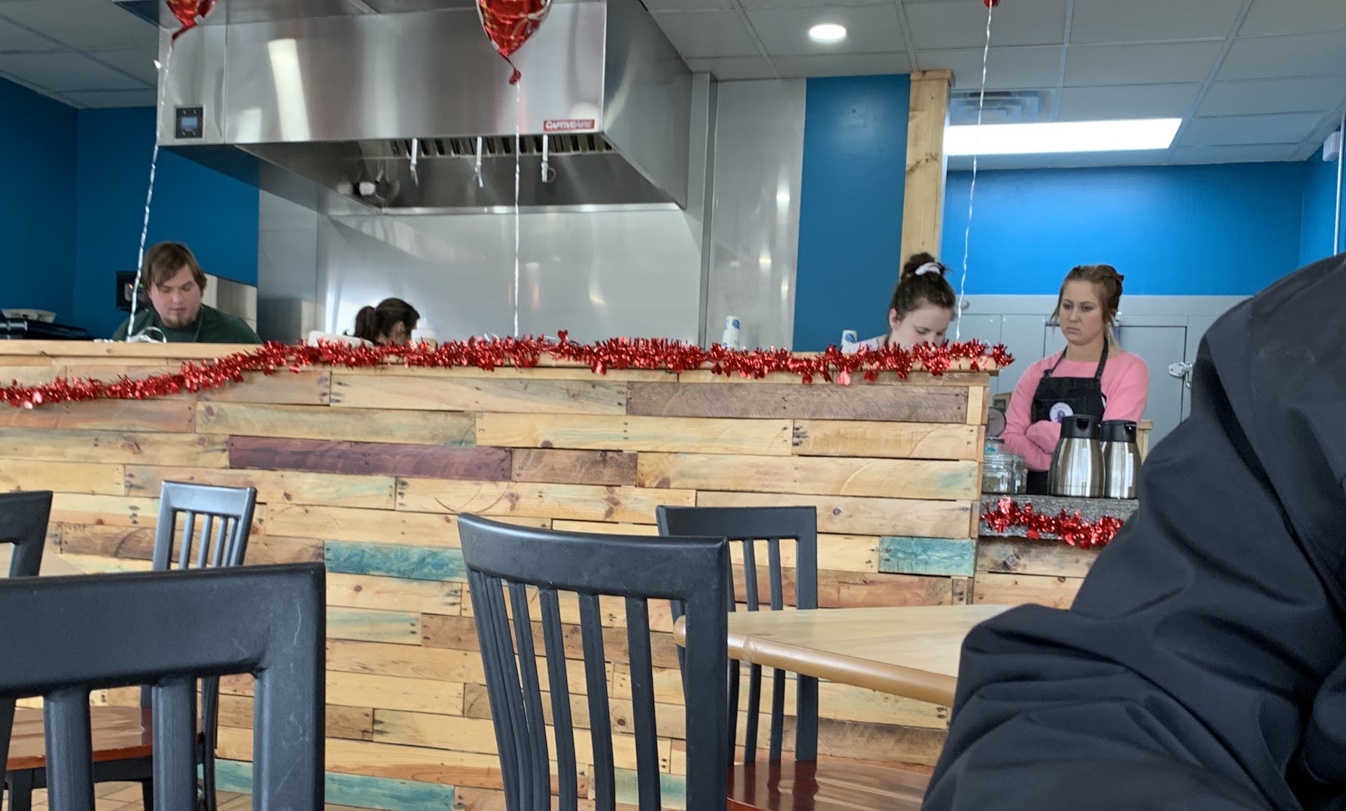 Atmosphere: It was around 10 a.m. seating was about half full and got to about 3/4 before we left. I recall one drive thru order while we were there. Everything was peaceful, people seemed happy. A few students were studying on laptops, a 👪 came in. 🎶 was nice, older 50s style, which was pleasant.